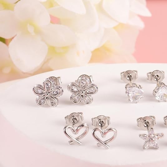6 Pairs Small Gold Stud Earrings Set for Women - Cubic Zirconia - Hypoallergenic