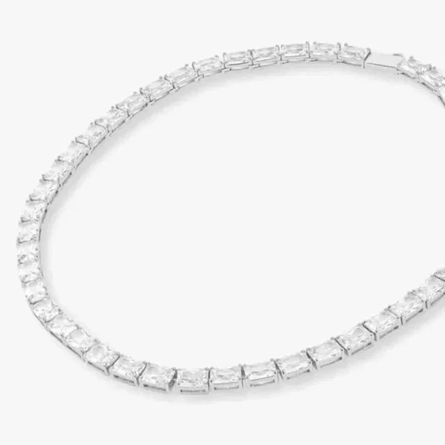 как выглядит 26Ct Lab Created Emerald Diam Tennis Womens Necklace 14K White Gold Plated 18" фото