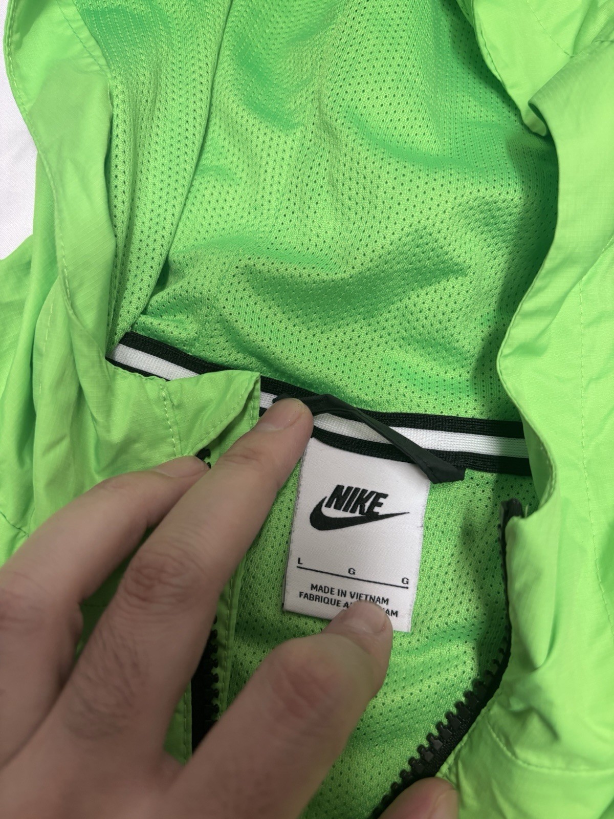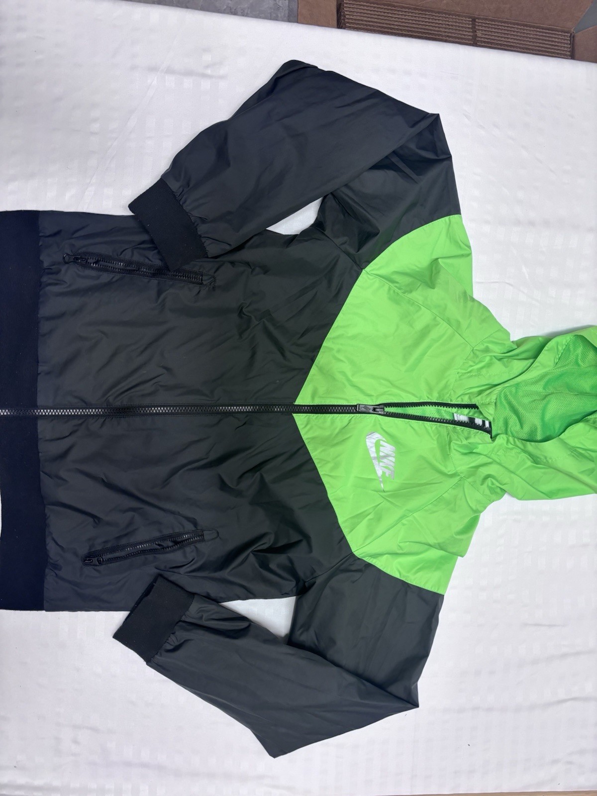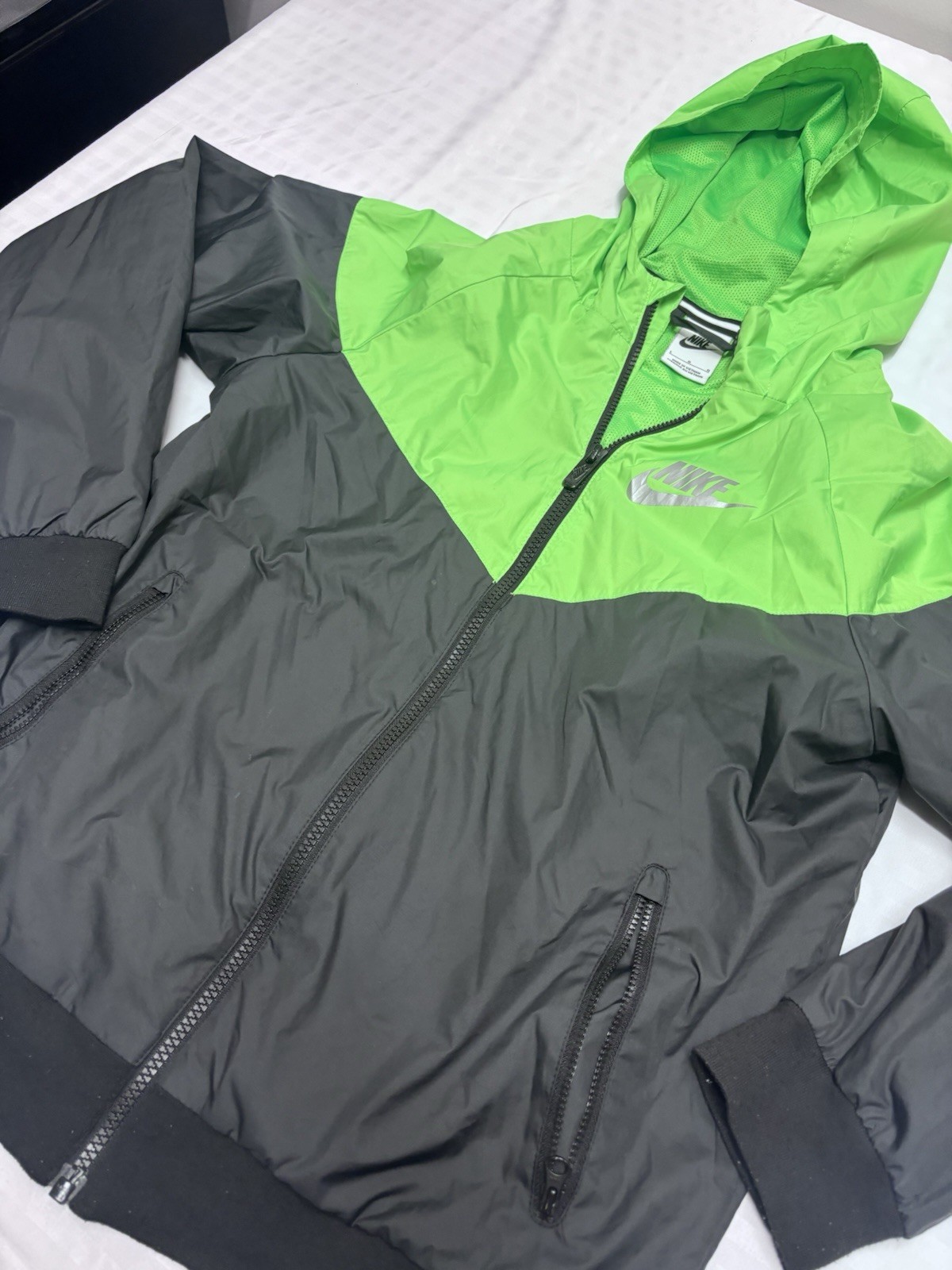 Boys Youth Nike Windbreaker hoodie thin Zip Up Jacket Size Large Green Black