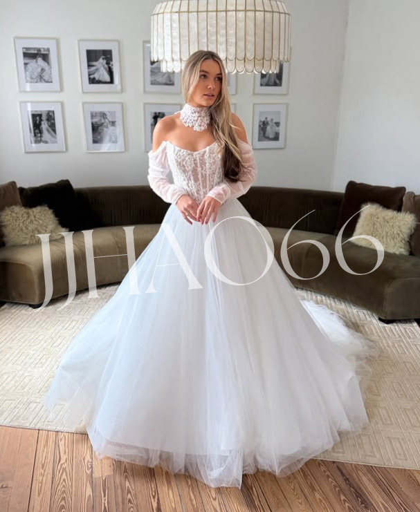 Beach Wedding Dresses Long Sleeves Long Sleeves Off Shoulder A Line Bridal Gowns