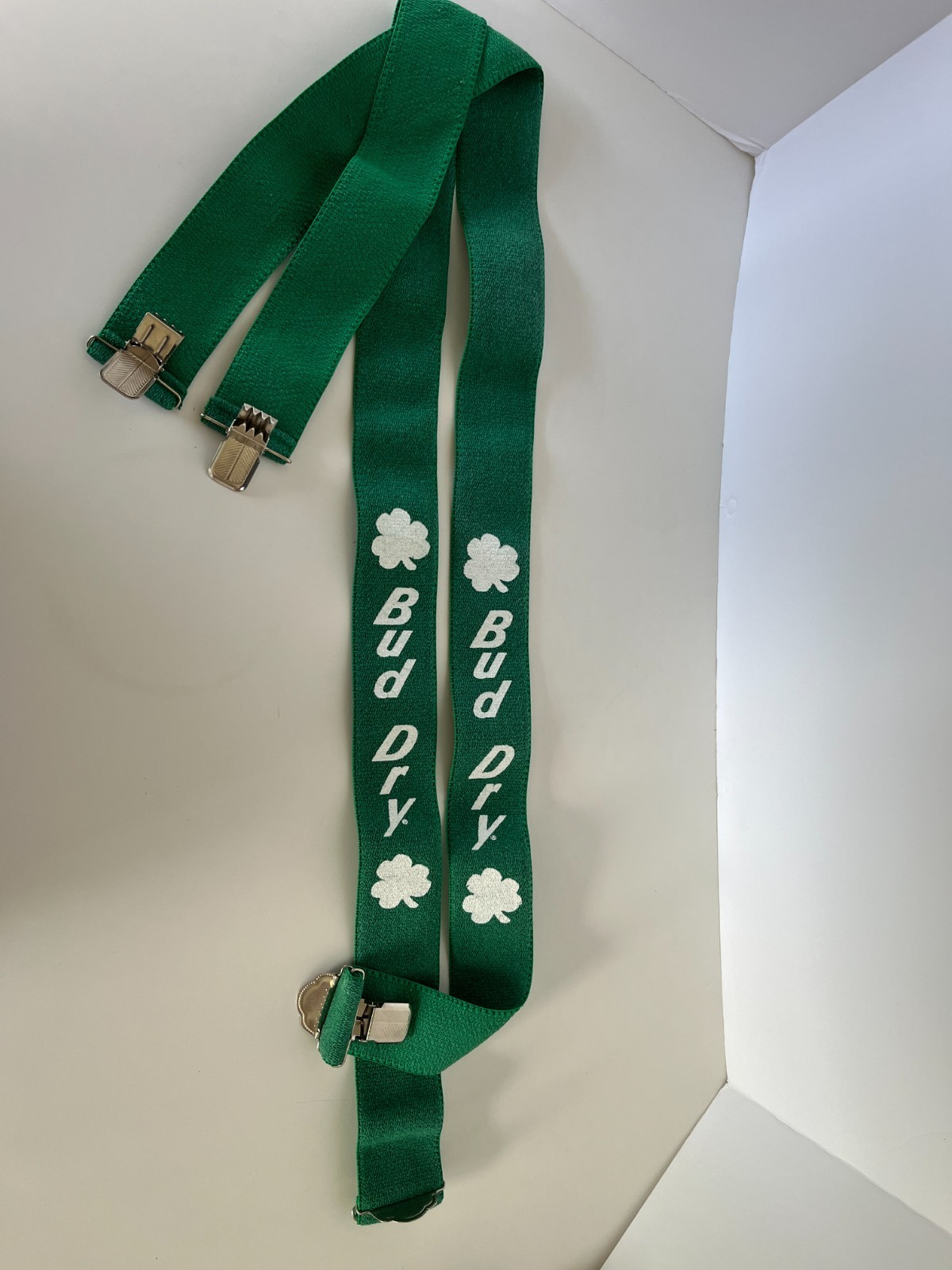 как выглядит St. Paddys Day Vintage Bud Dry Shamrock Suspenders/green suspenders/Budweiser фото