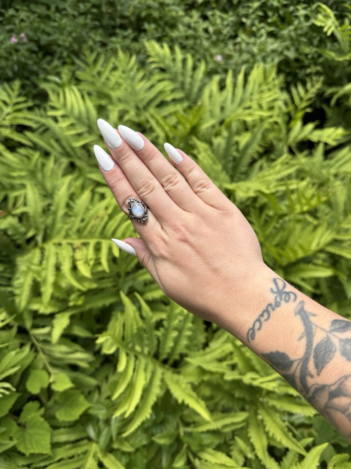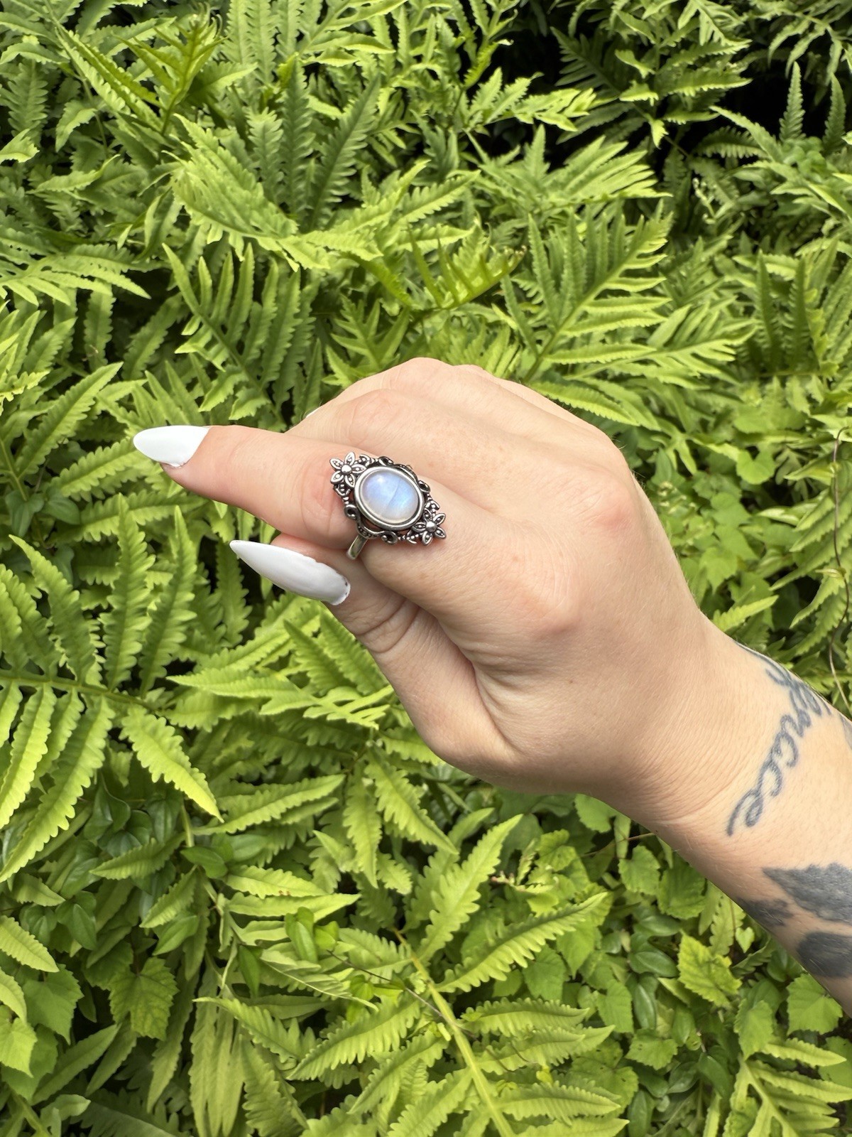 как выглядит Floral Moonstone Ring Crystal Jewelry, Stainless Steel, Adjustable фото