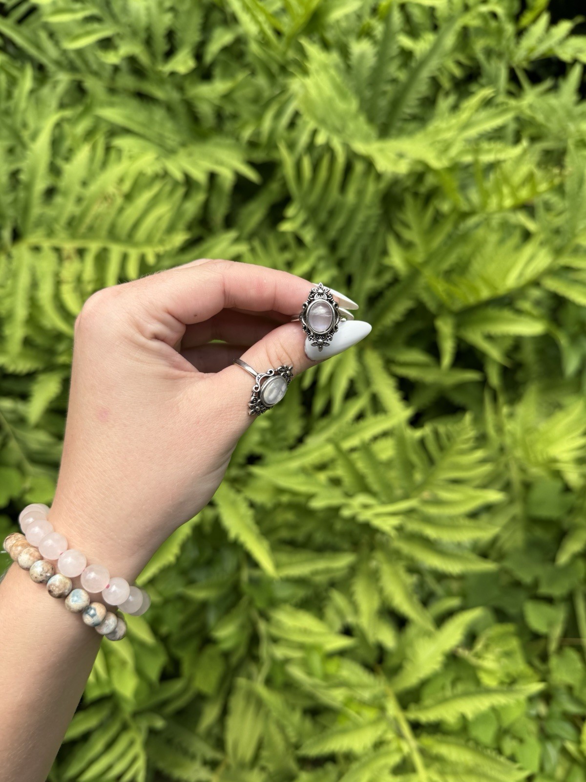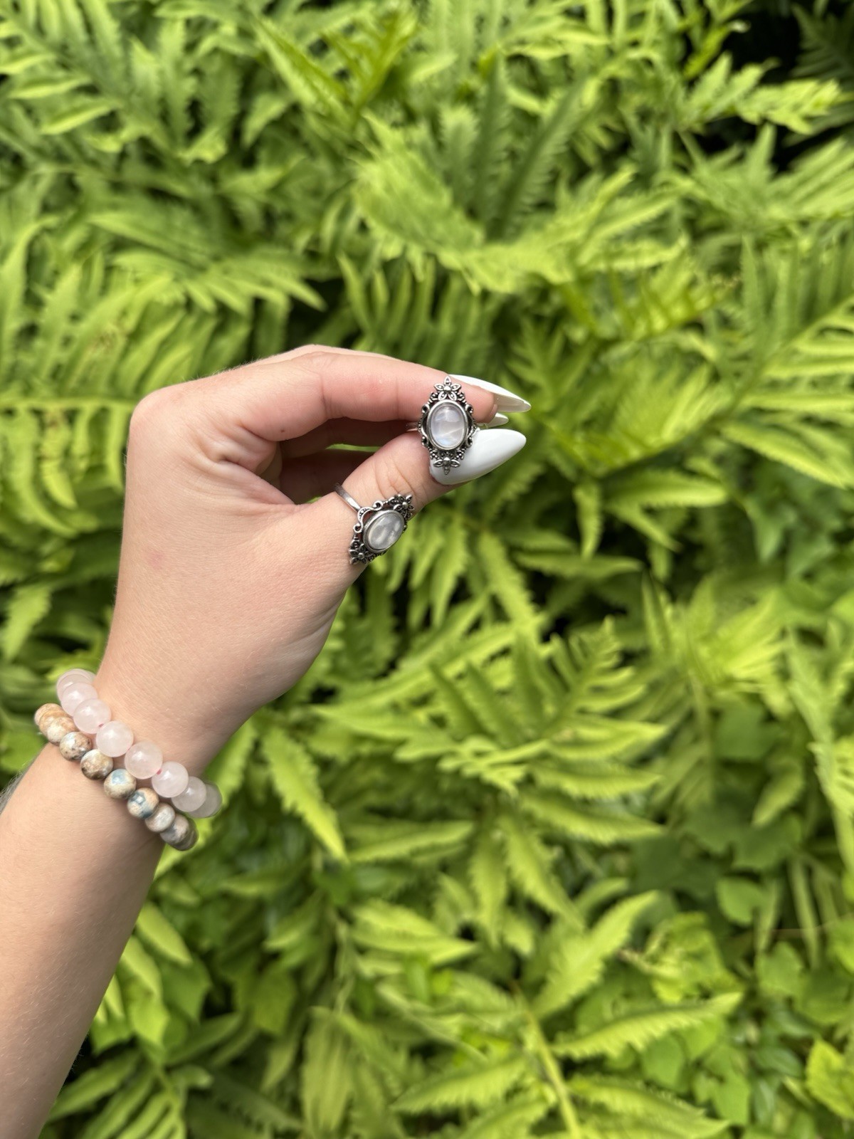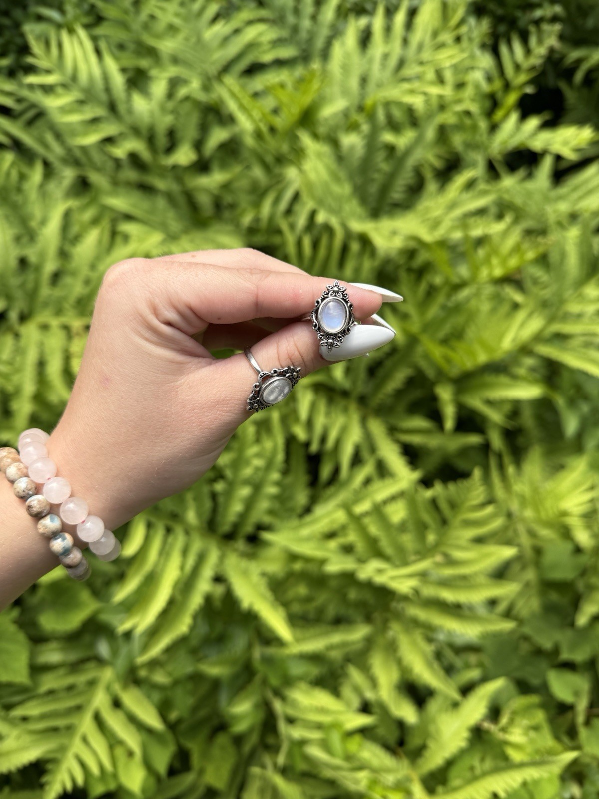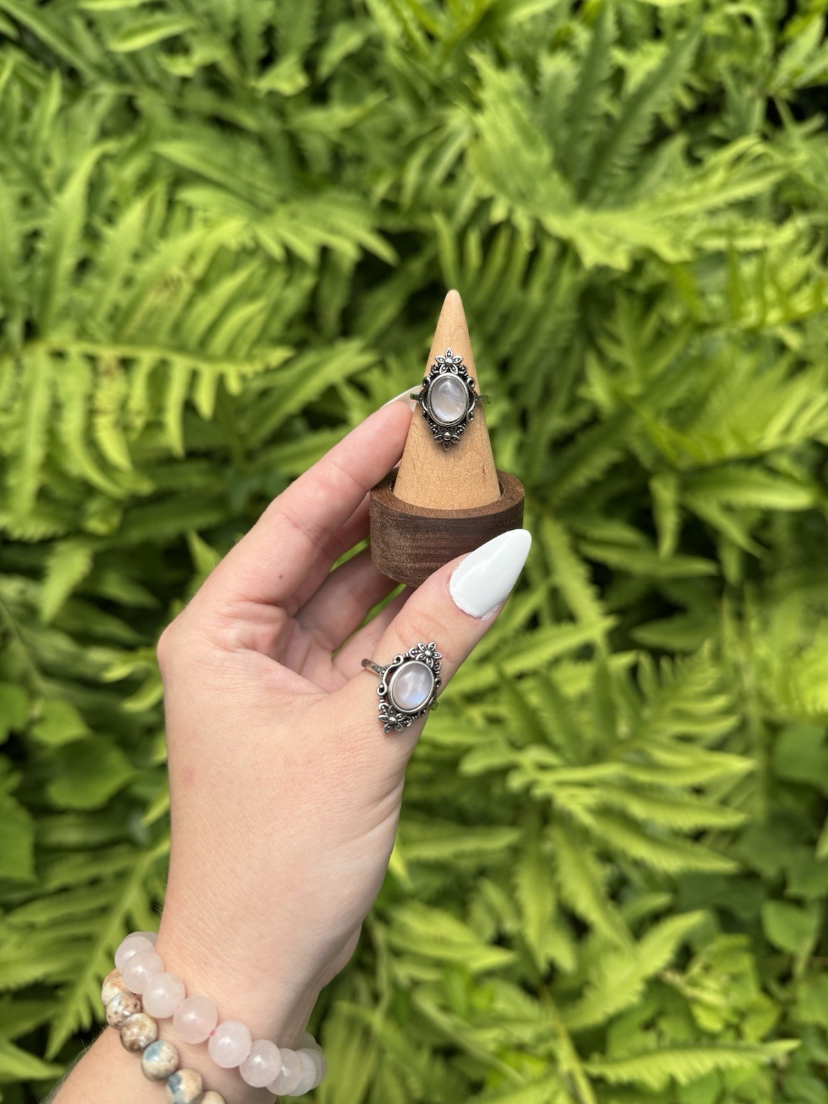 Floral Moonstone Ring Crystal Jewelry, Stainless Steel, Adjustable