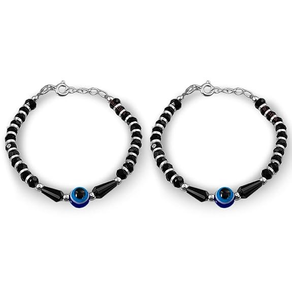 • Traditional Silver And Black Crystals Baby Nazariya Bracelet For Kids One Pair