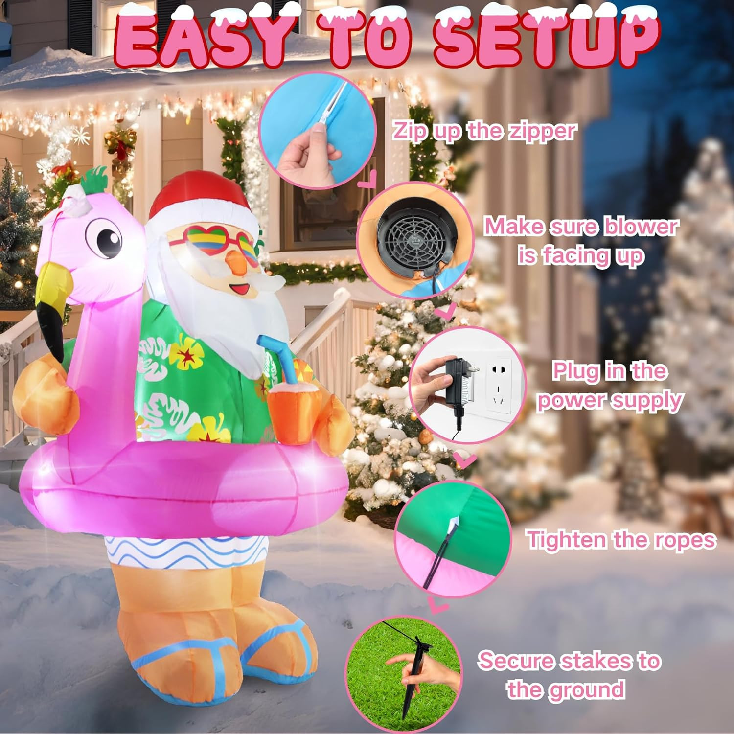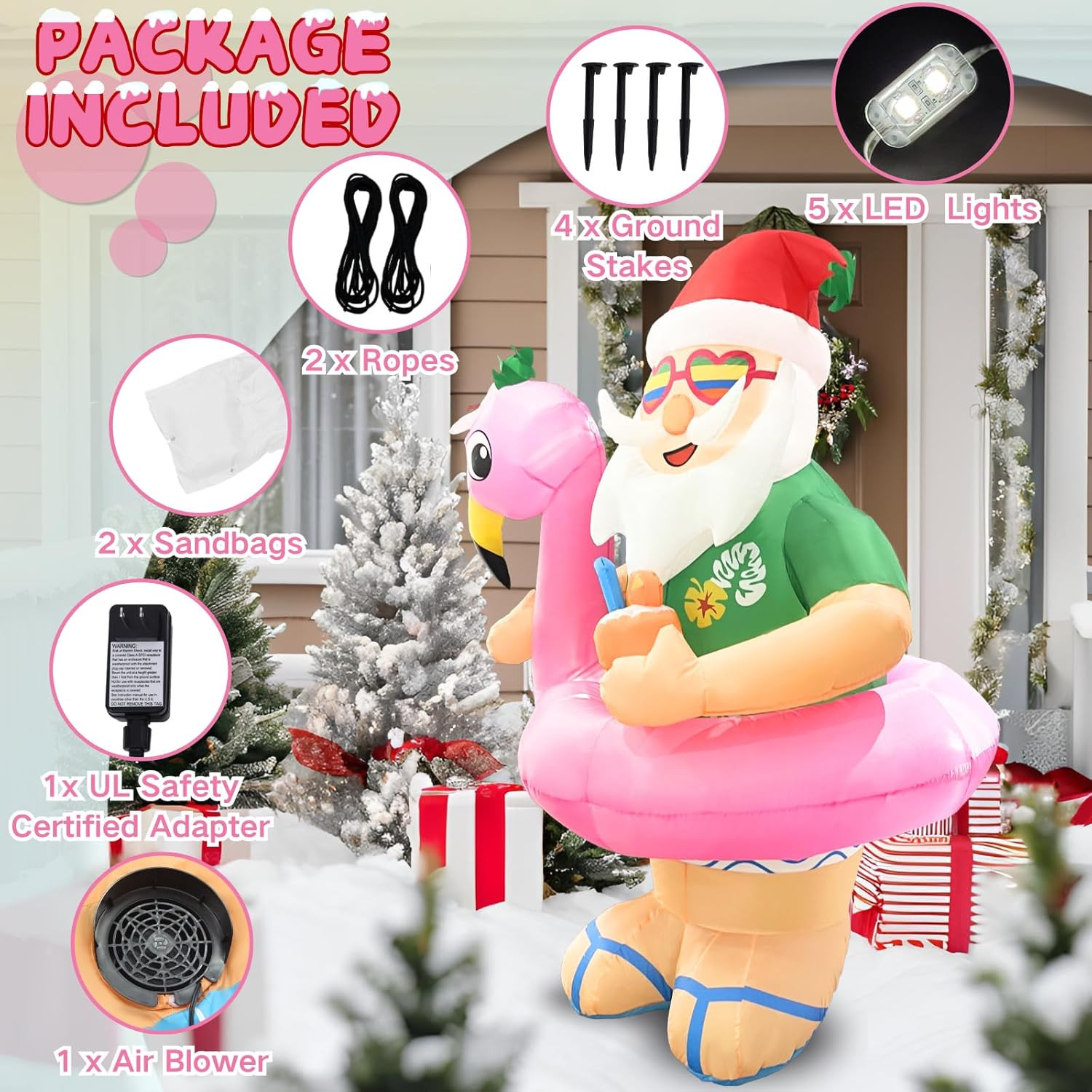 Christmas Inflatables Santa Claus Outdoor Decorations 6Ft Giant Hawaiian Santa F