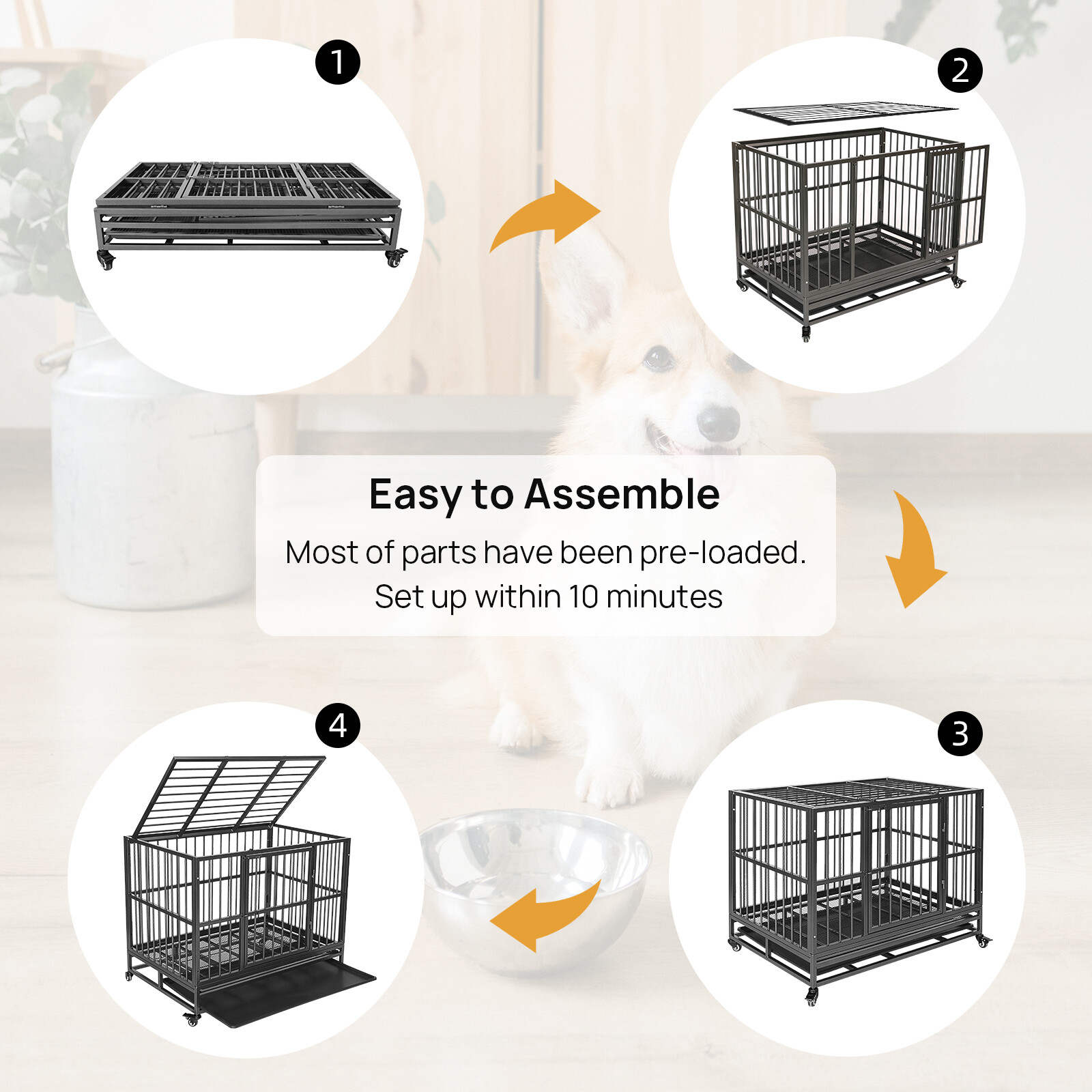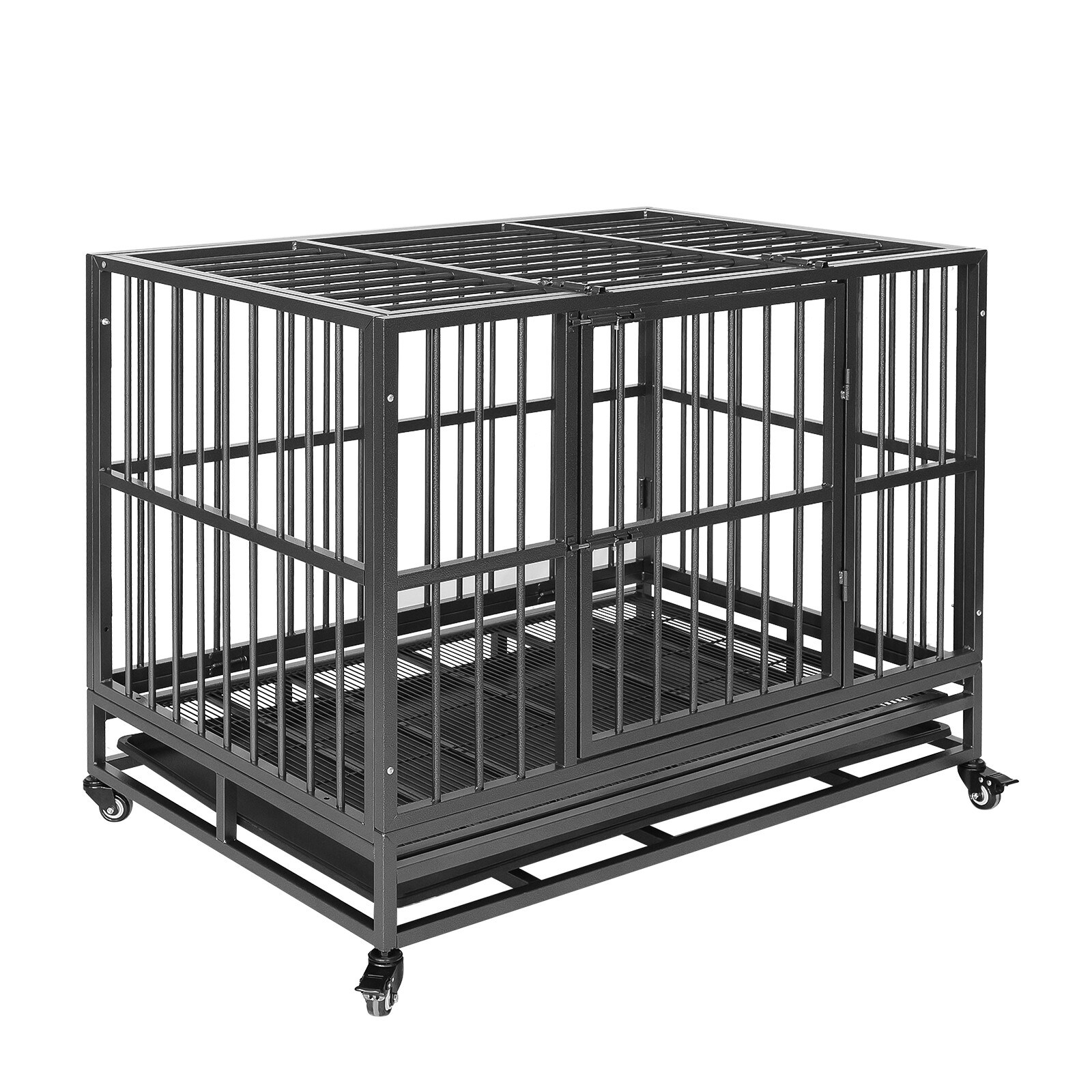 XXL Heavy Duty Pet Dog Cage Strong Metal Crate Kennel Playpen with Wheels Tray