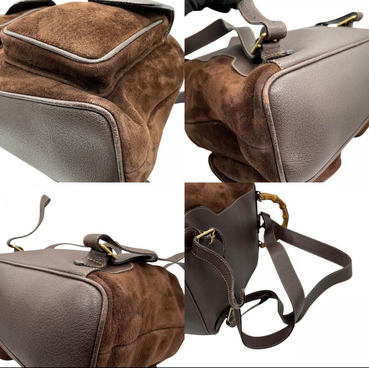 как выглядит Vintage Gucci Brown Suede Leather Bamboo Backpack  Iconic 90s Luxury фото