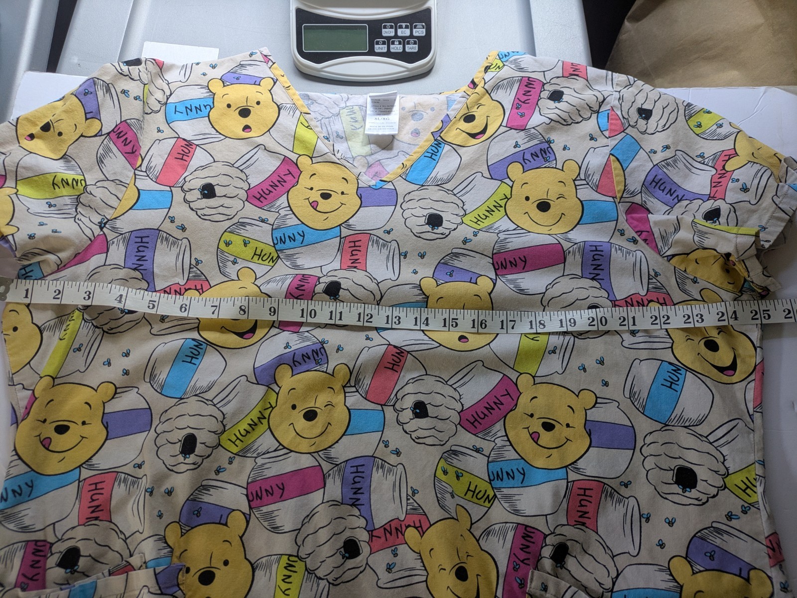 Disney Winnie the Pooh Womens Medical V-Neck Scrub Top Shirt Size XL