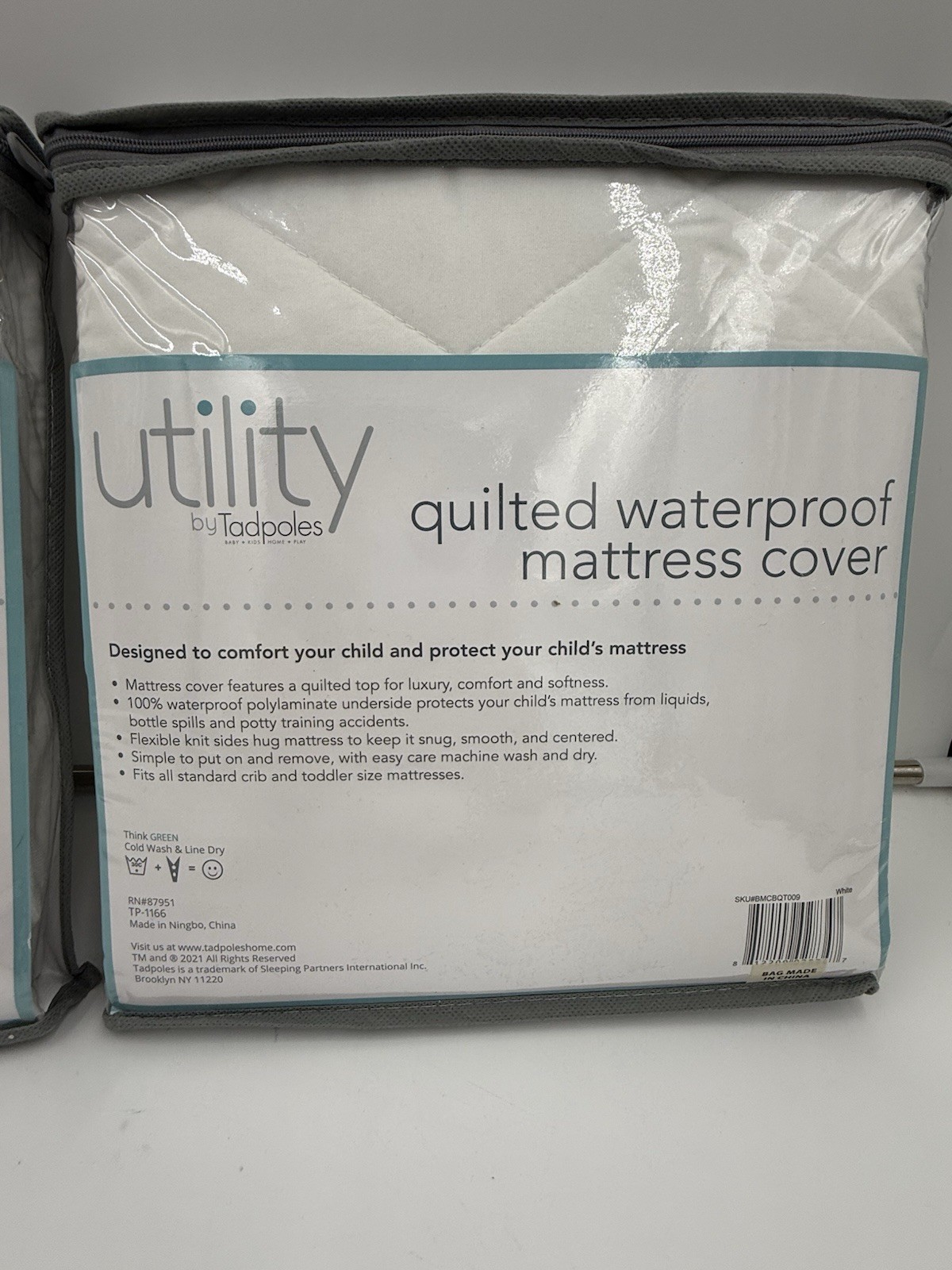 2 PackUtility By Tadpoles Quilted Waterproof Mattress Cover For Crib 52 x28 x 9