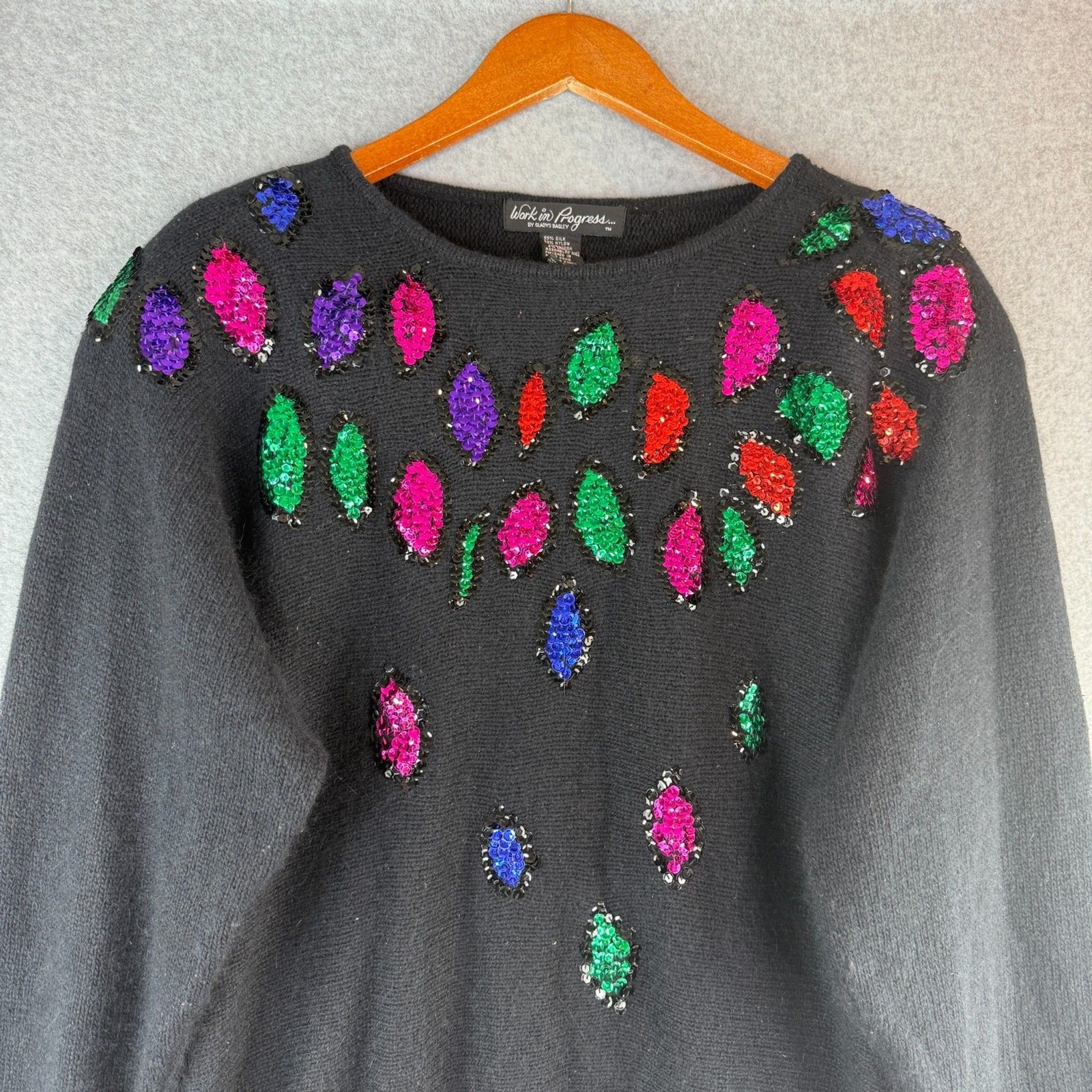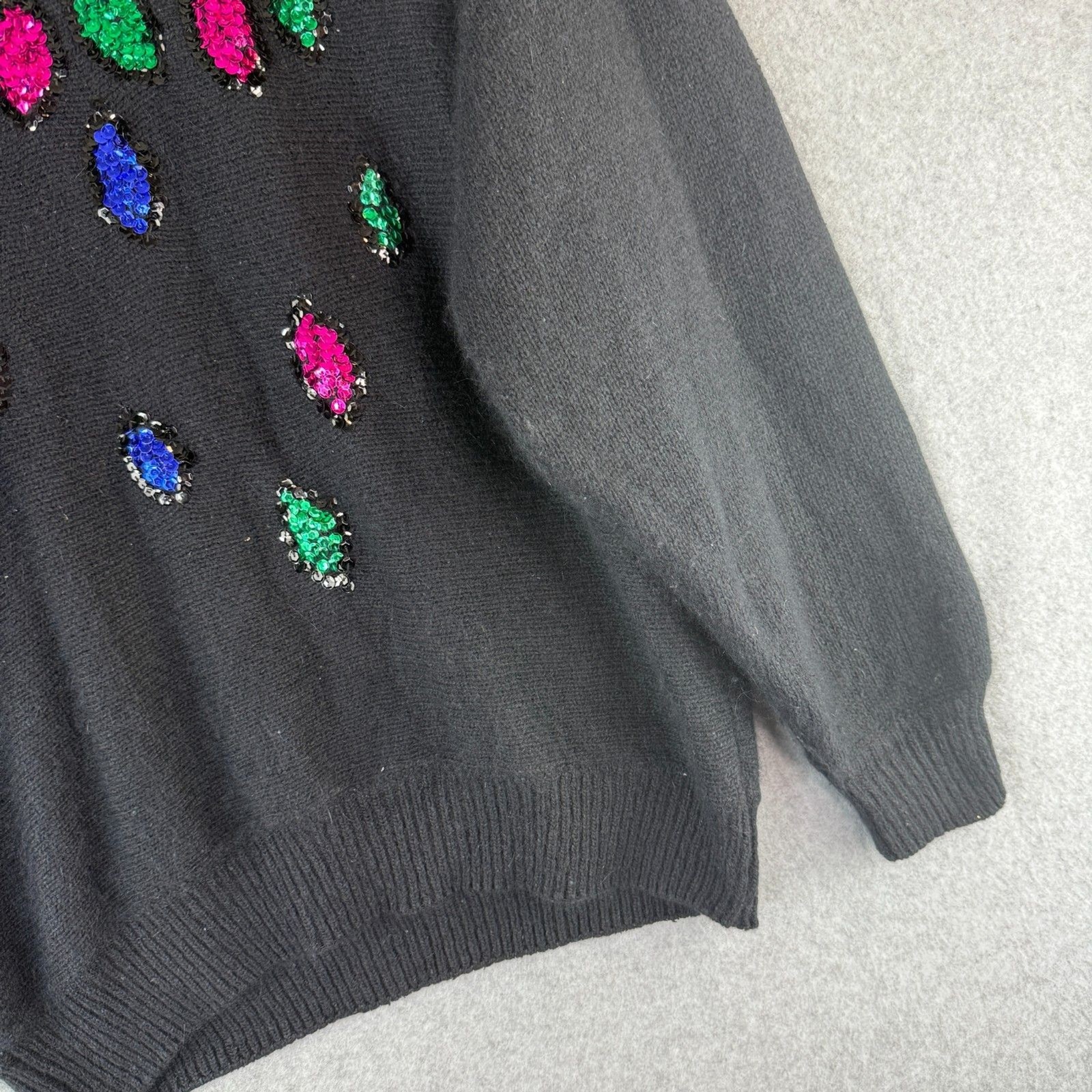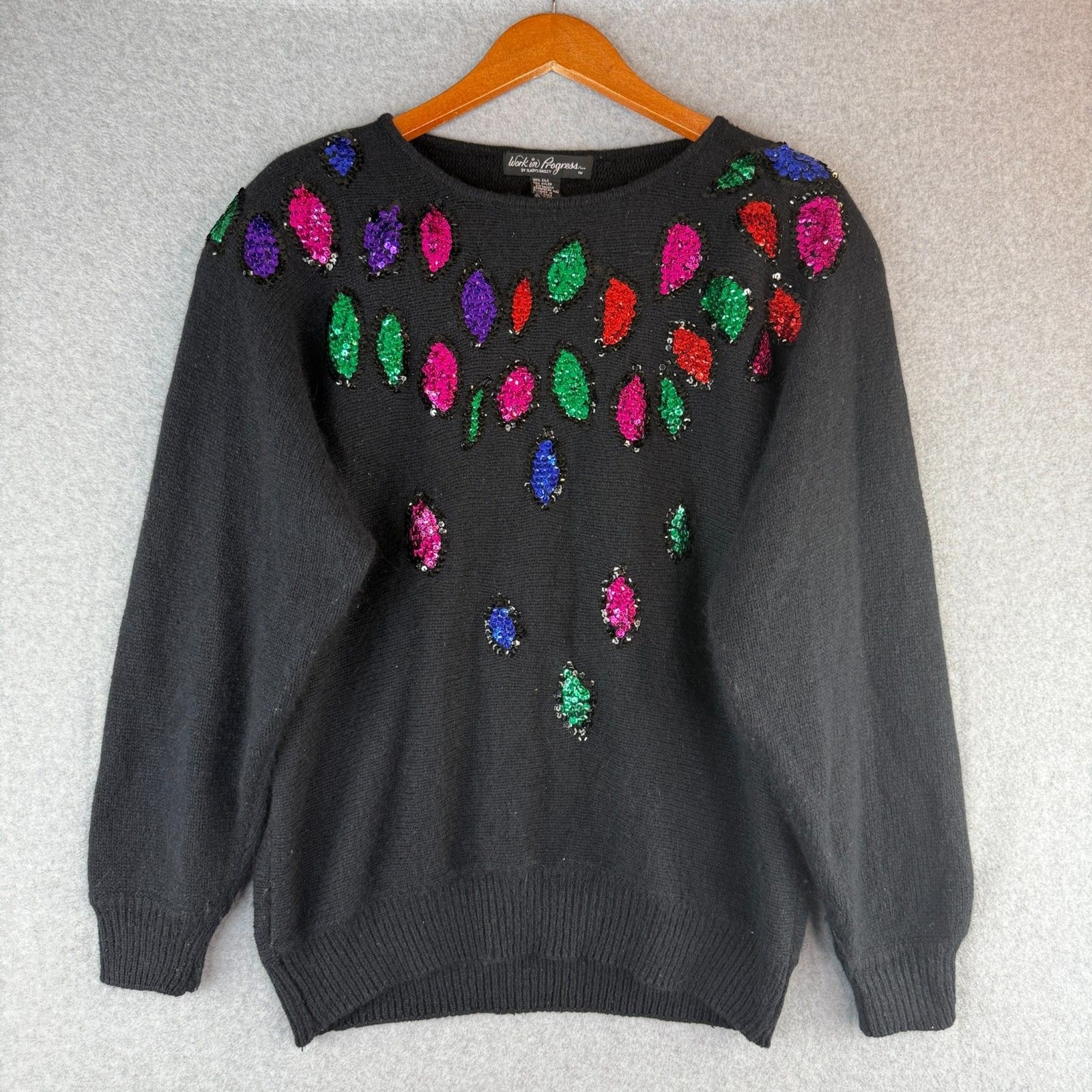 как выглядит Vintage Retro Womens Christmas Lights Black Sweater Silk/Angora Blend Pull Over фото
