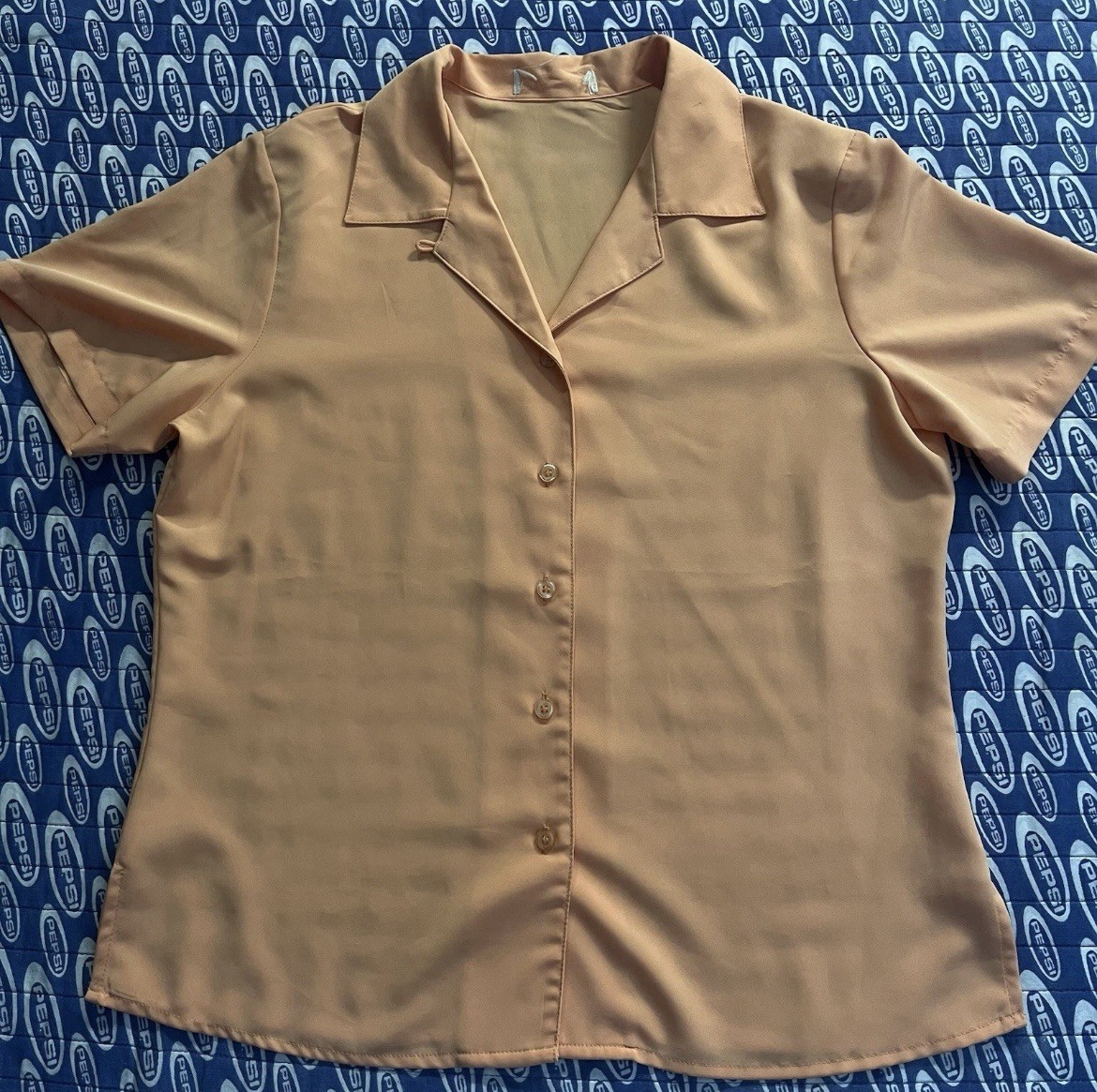 Vintage 60s Women s Orange Cream Loop Collar Rockabilly Button Down Shirt Preppy