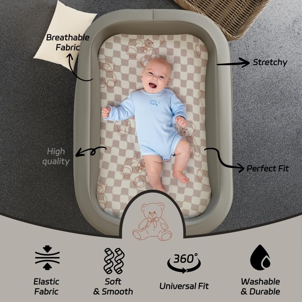 Fitted Baby Neutral Bassinet Sheets Bear and Buffalo Check Plaid