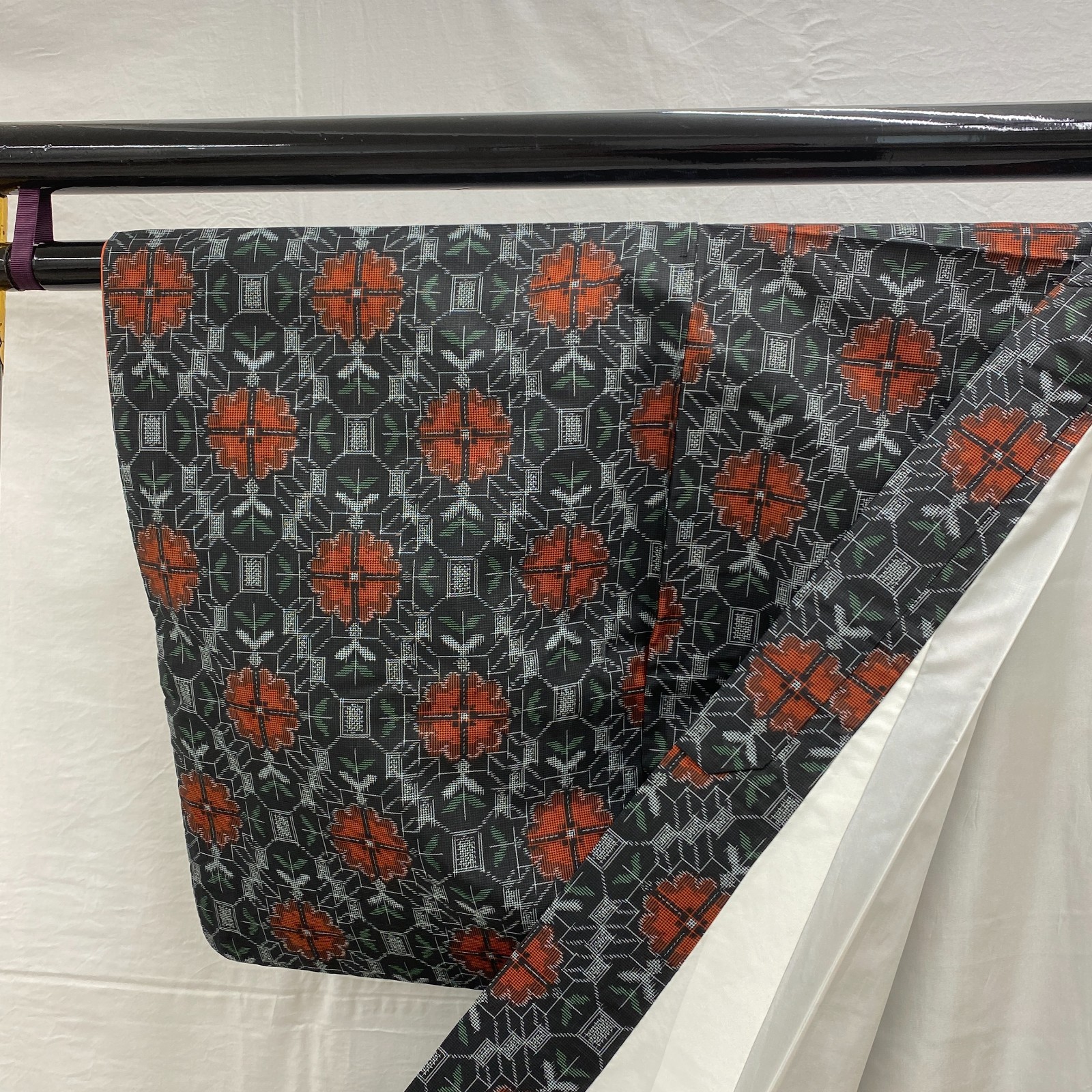 как выглядит Japanese Vintage Kimono Silk Black Oshima Tumugi Traditional Authentic Length62i фото