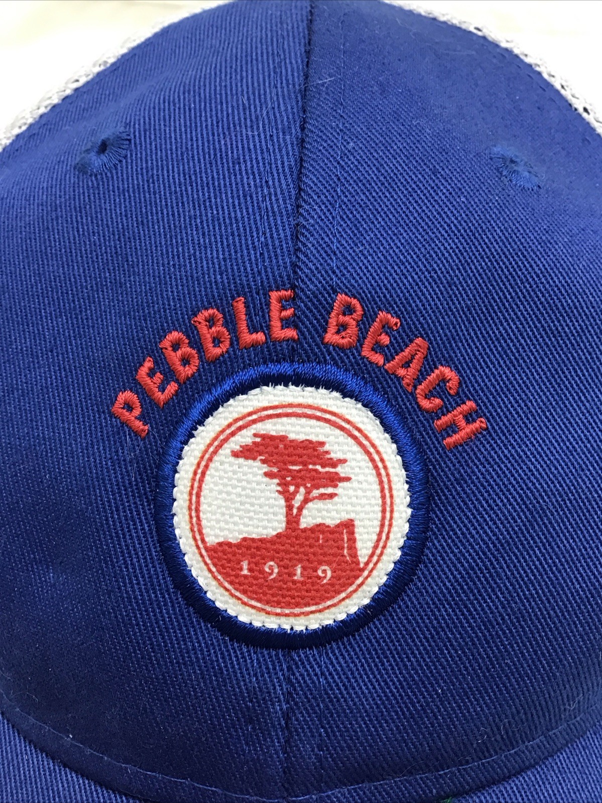 Pebble Beach Golf Hat Blue White Mesh Cap Embroidered Strapback Youth One Sz