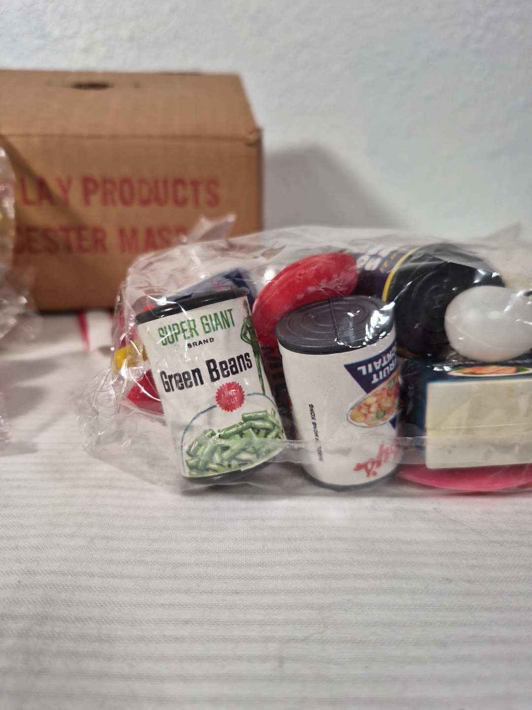 VTG COME PLAY PRODUCTS PLAY FOOD, KITCHEN POTS PANS, DINERWARE, UTENSILS -NOS