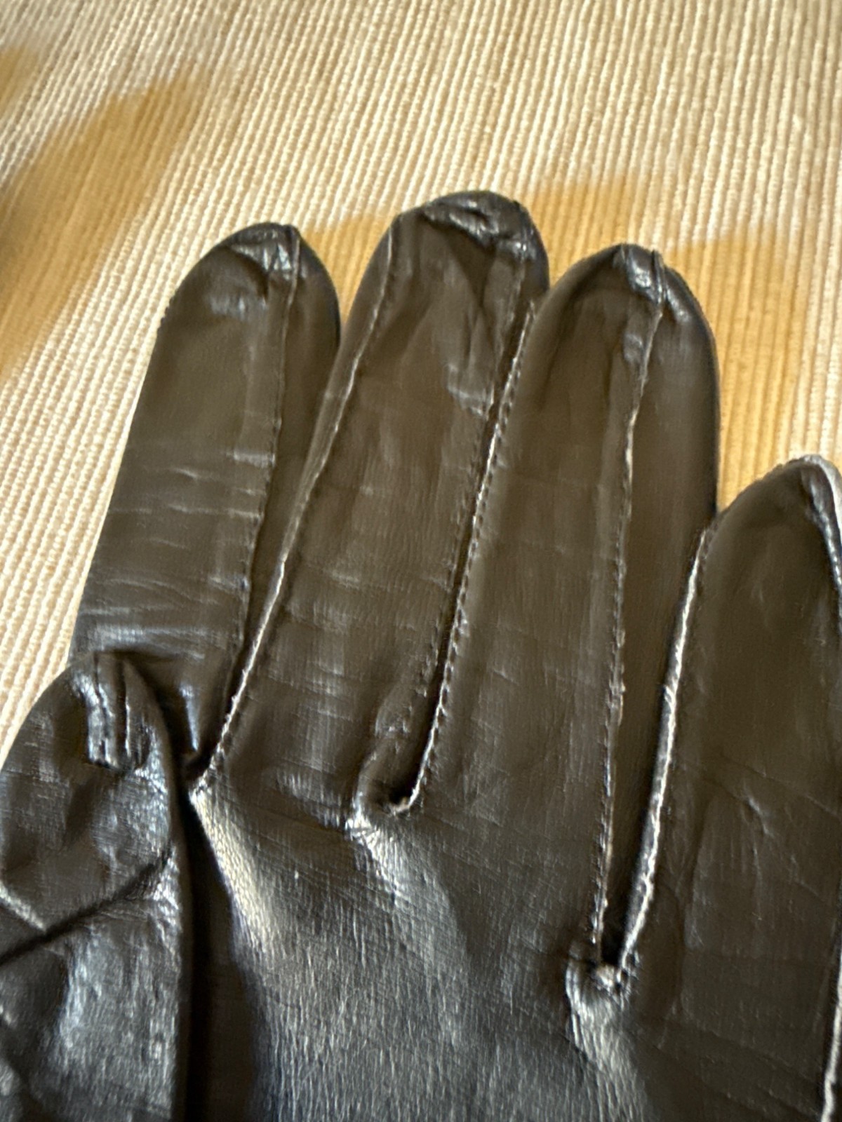 как выглядит Vintage Black Leather Gauntlet Gloves 1950s Mid-Arm Length Sleek Retro Chic фото