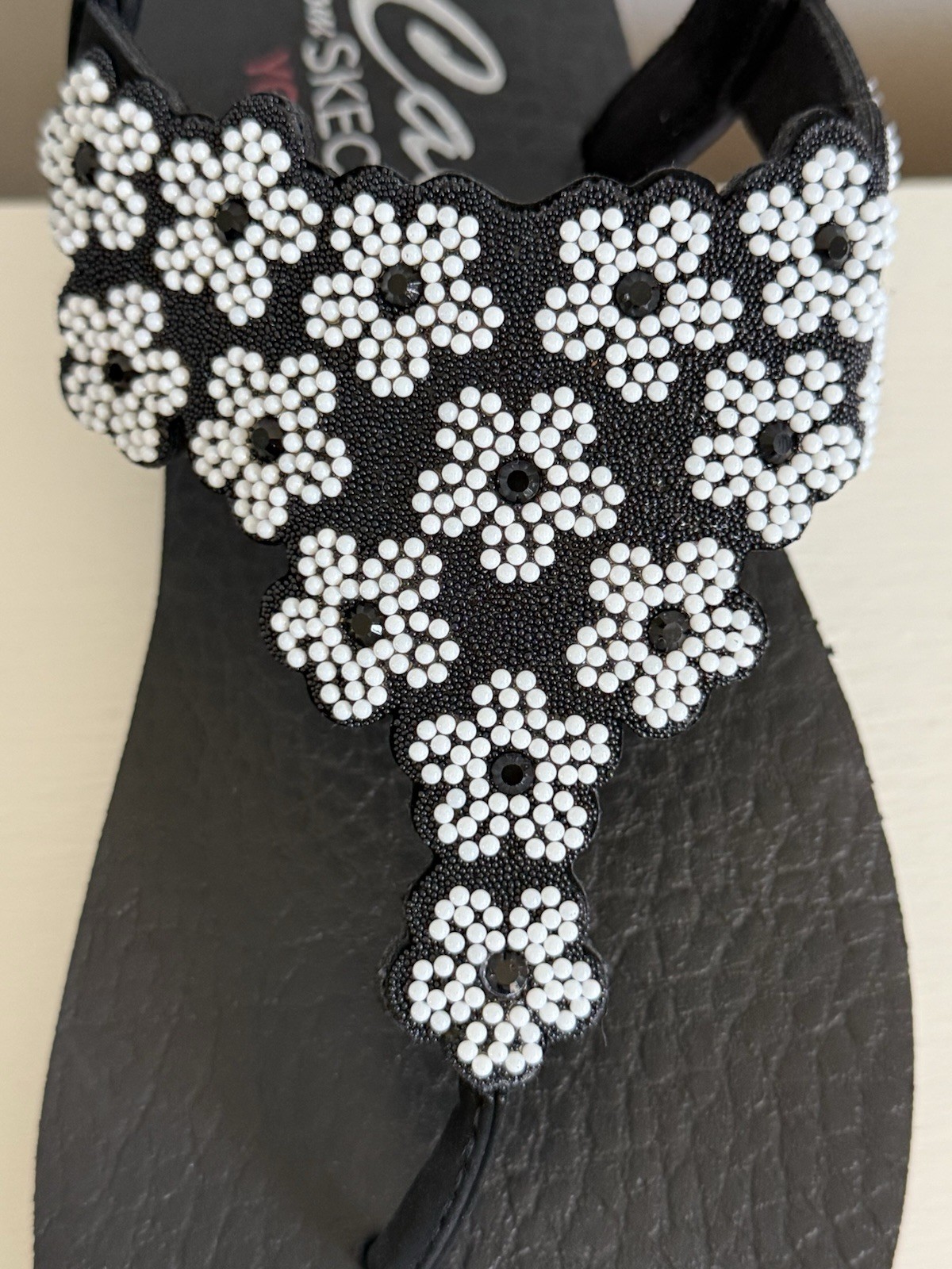 Skechers Cali Yoga Foam Meditation Black Floral Thong Sandals Women s 7