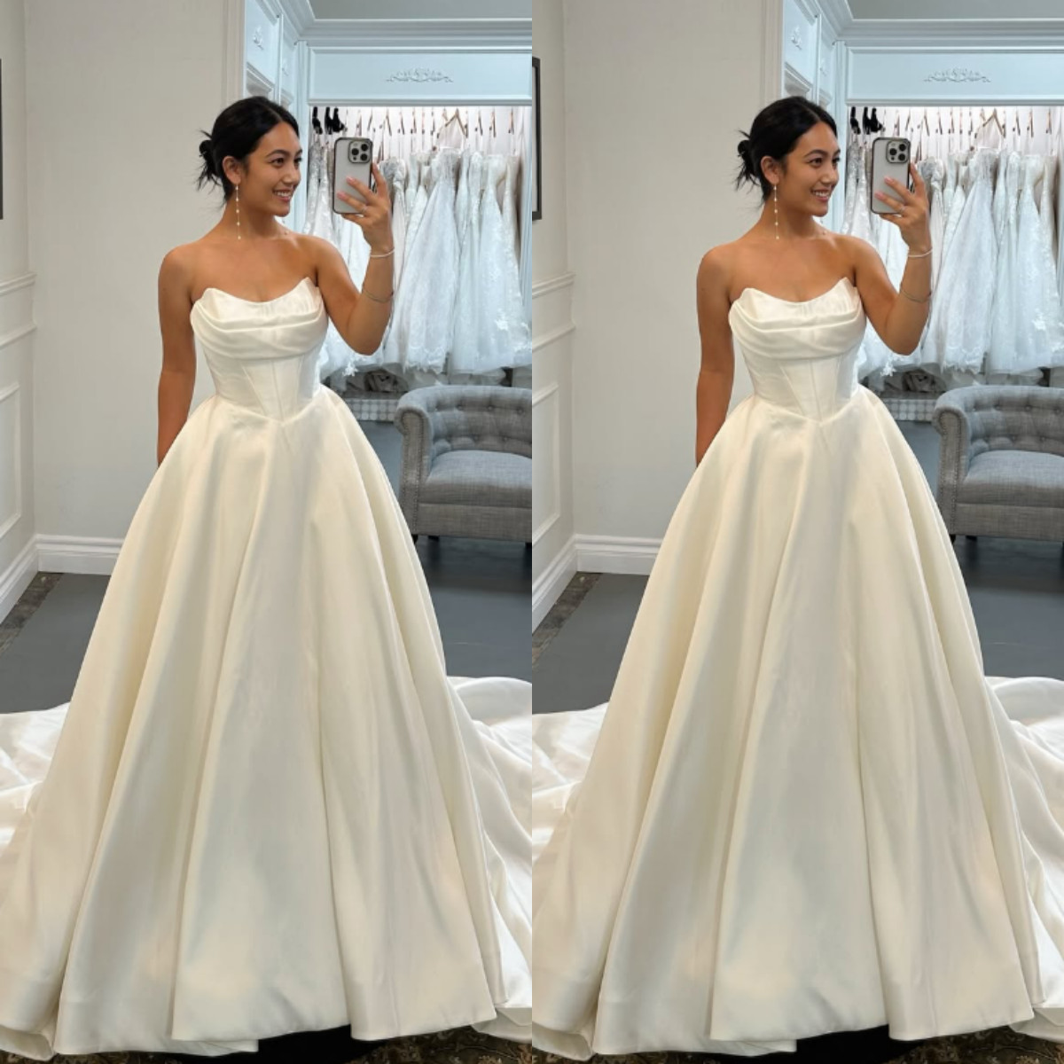 как выглядит Satin Wedding Dresses White Sweetheart Sleeveless Ivory A Line Bridal Gowns фото