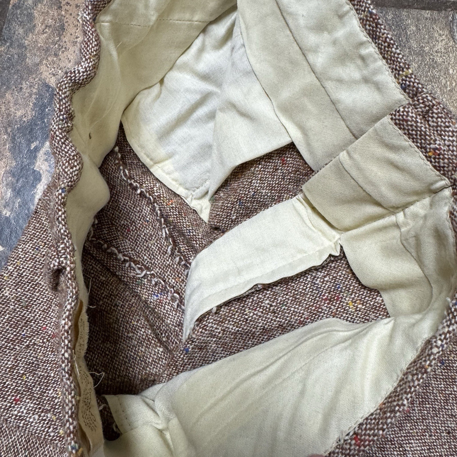 Vintage 60s-70s Tan Multicolor Tweed Bootcut Flare Bell Bottom Pants 27x29
