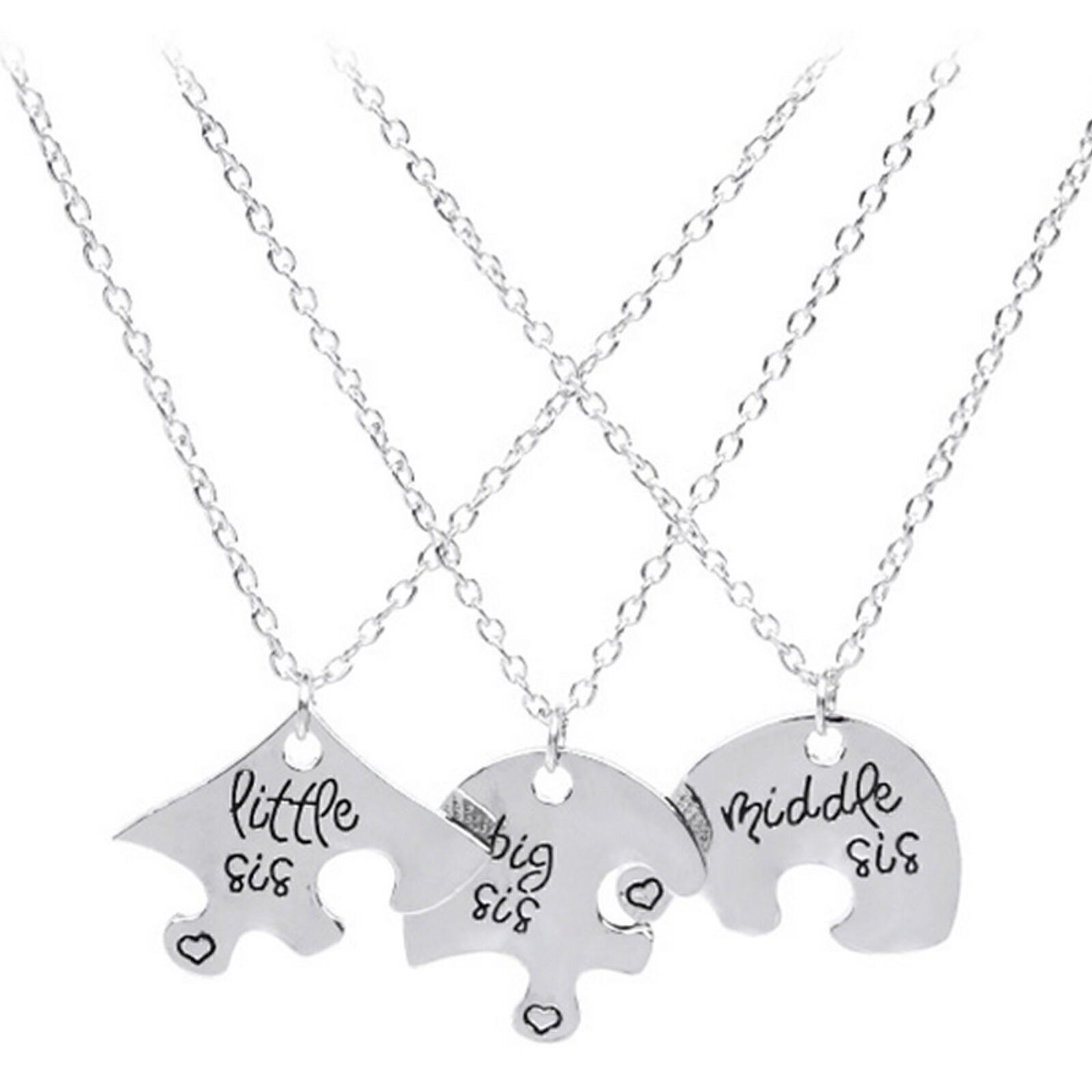 Little Sis Middle Sis Big Sis 3 in 1 Heart Puzzle Shape Sister Pendant Necklace