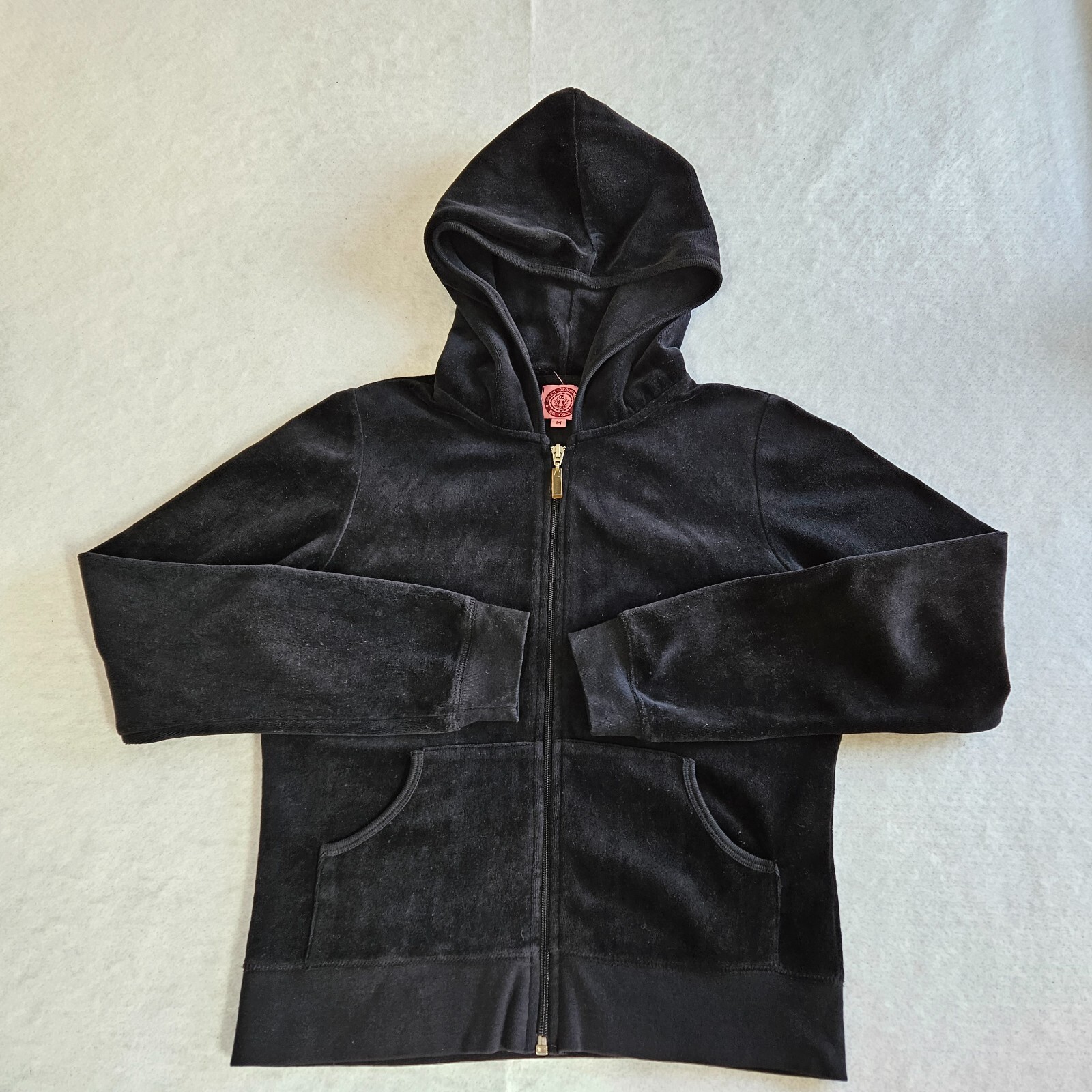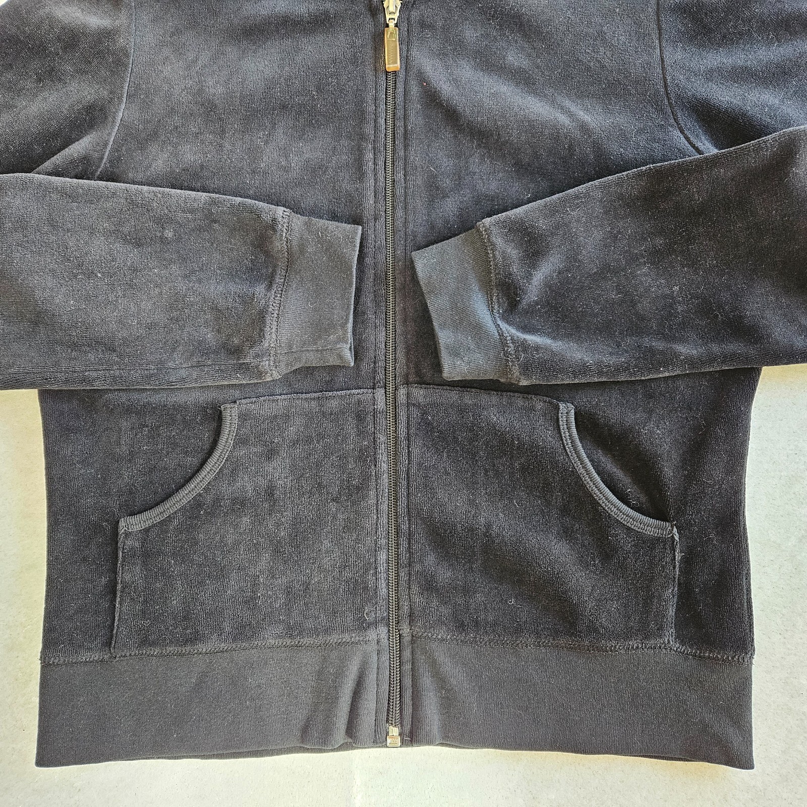 как выглядит VTG Velour Tracksuit 2Pc Womens M Black Hood Flare Pants Athletic Dept Y2K 90s фото