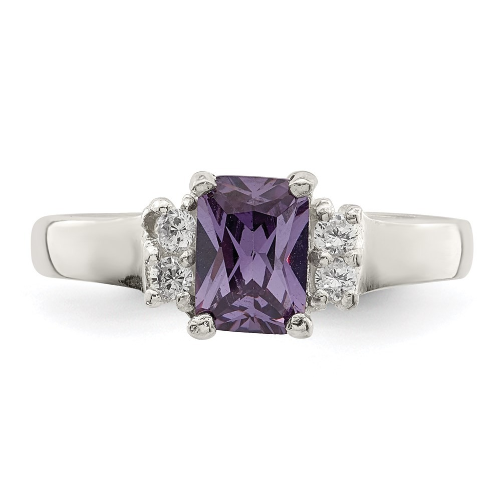 925 Sterling Silver Purple White Cubic Zirconia Ring Size 7