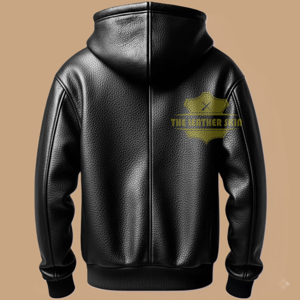 Men's Black Premium Leather Hoodie Handmade Genuine Lambskin Leather Jacket