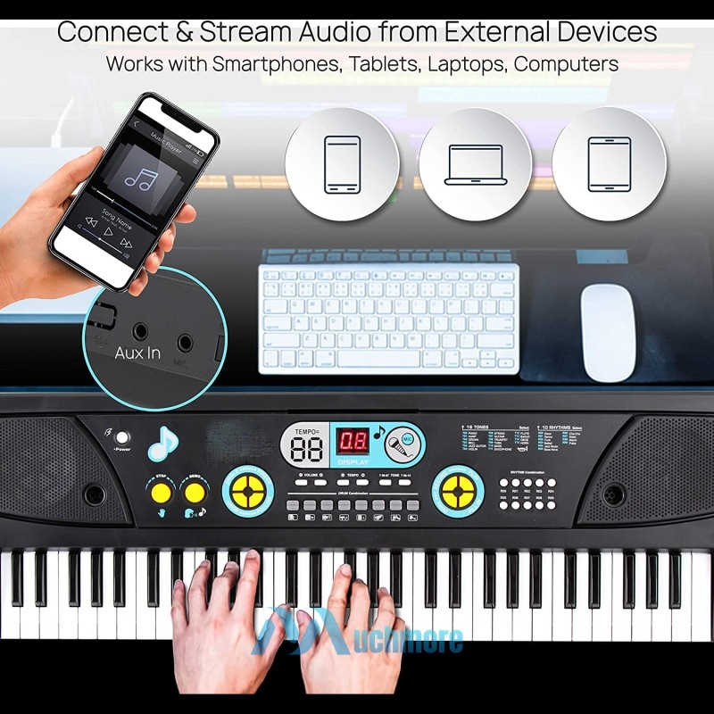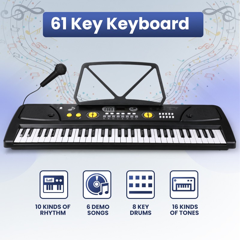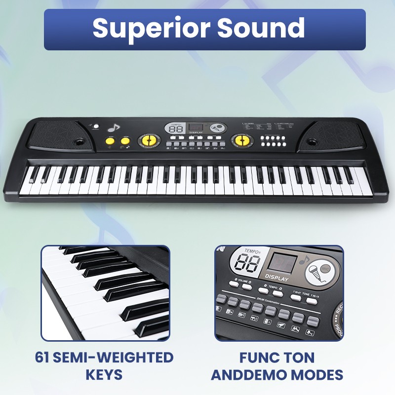 LCD Smart 61 Keys Electronic Keyboard Digital Piano Rechargeable with Microphone