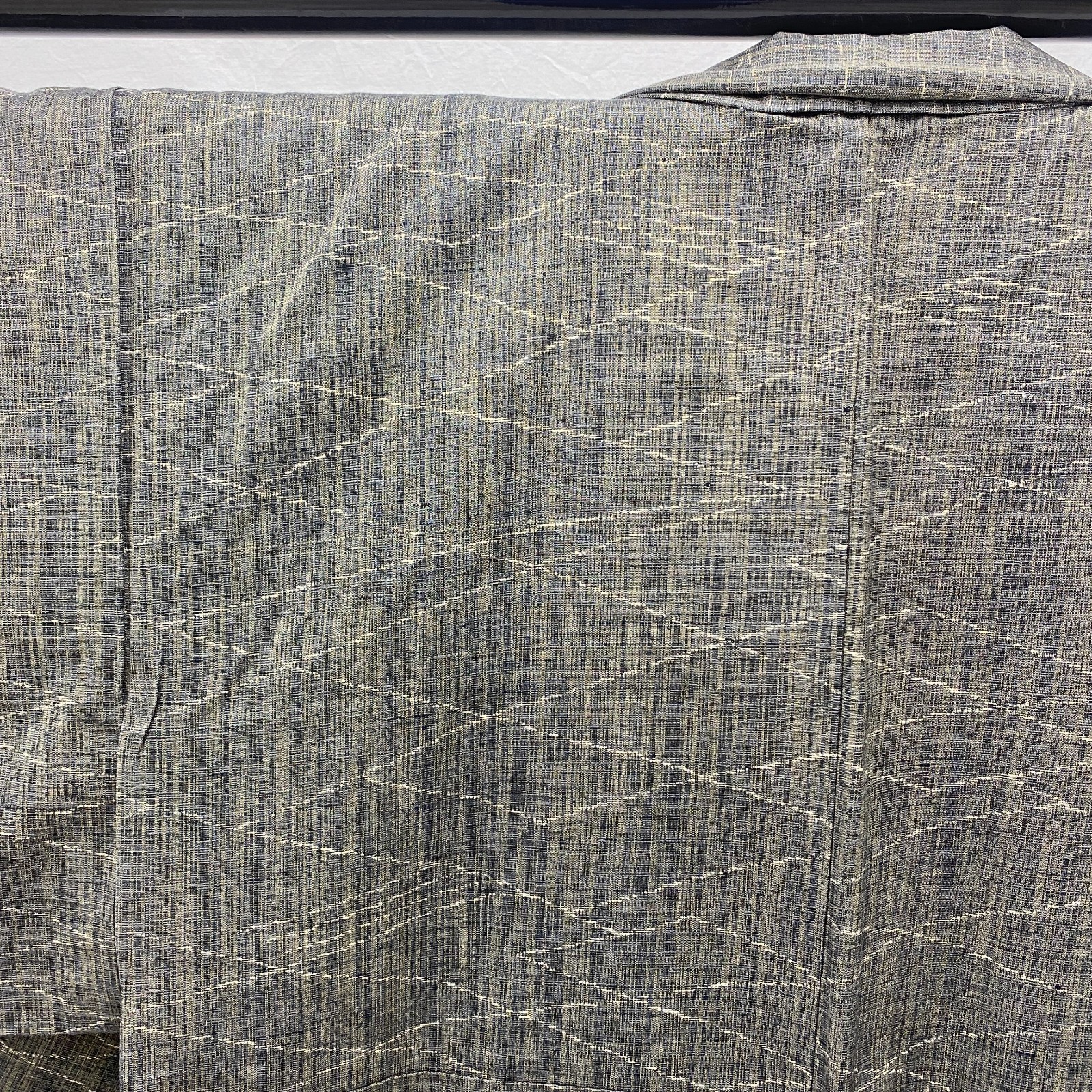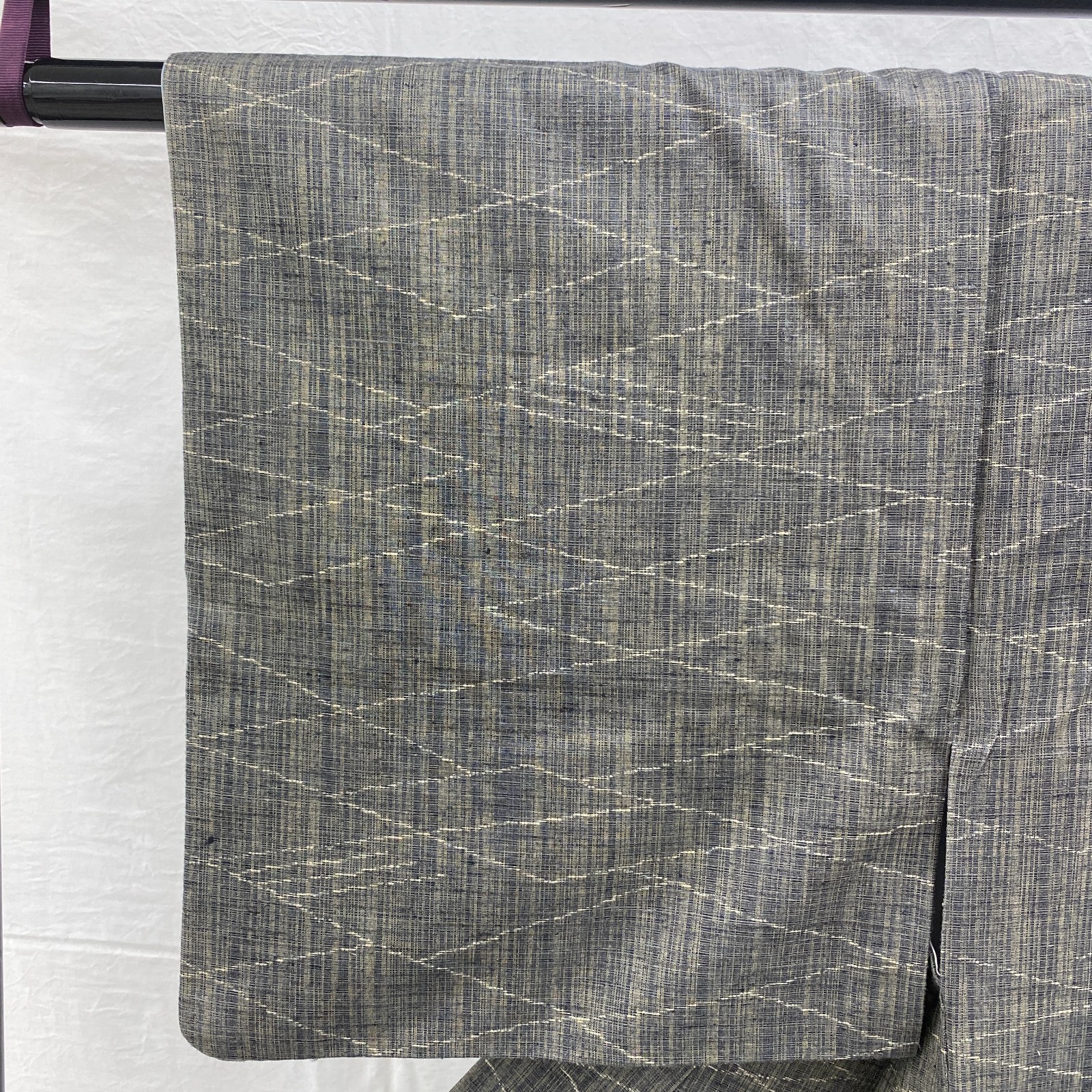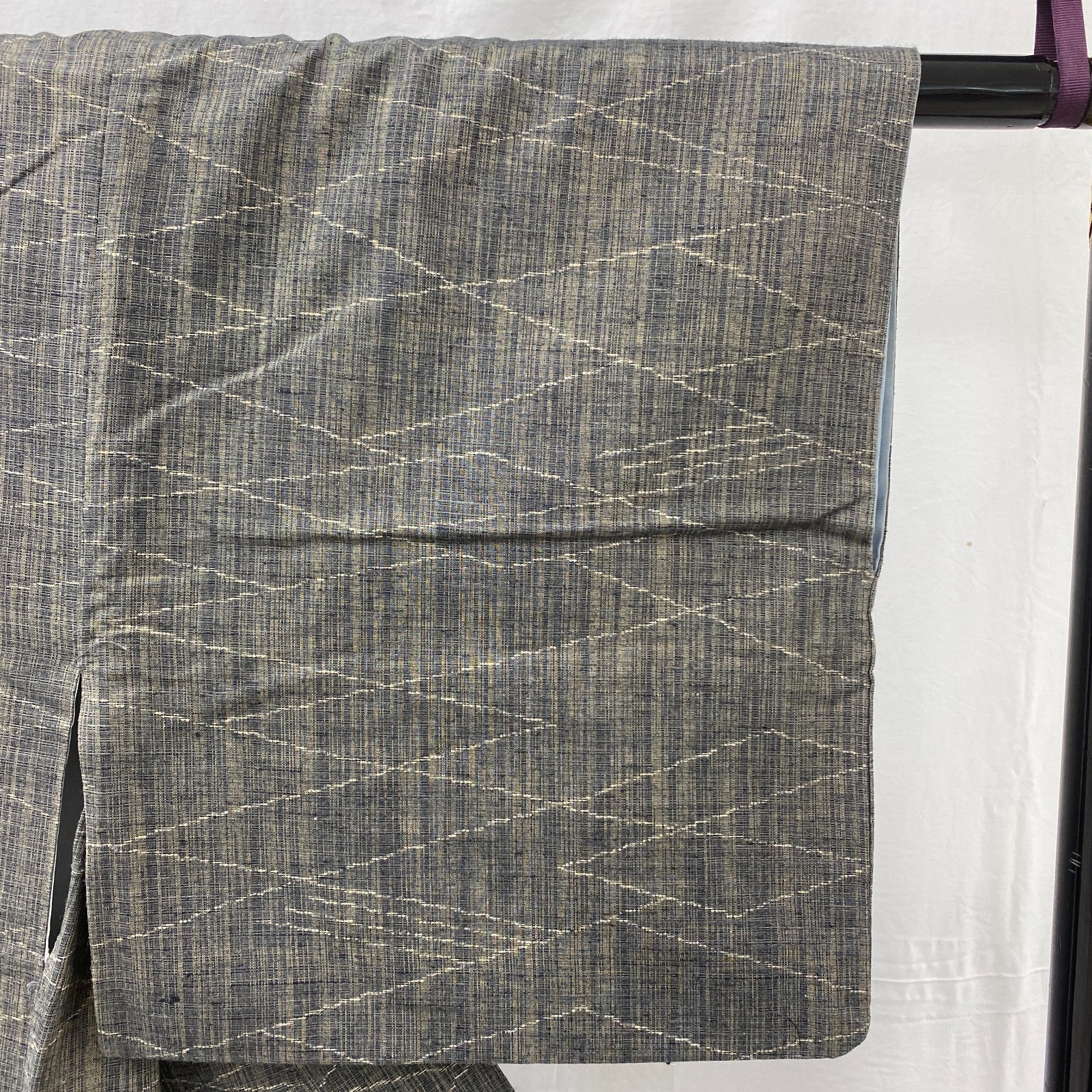 Japanese Vintage Kimono Silk Gray Tumugi Traditional Authentic Length 58in