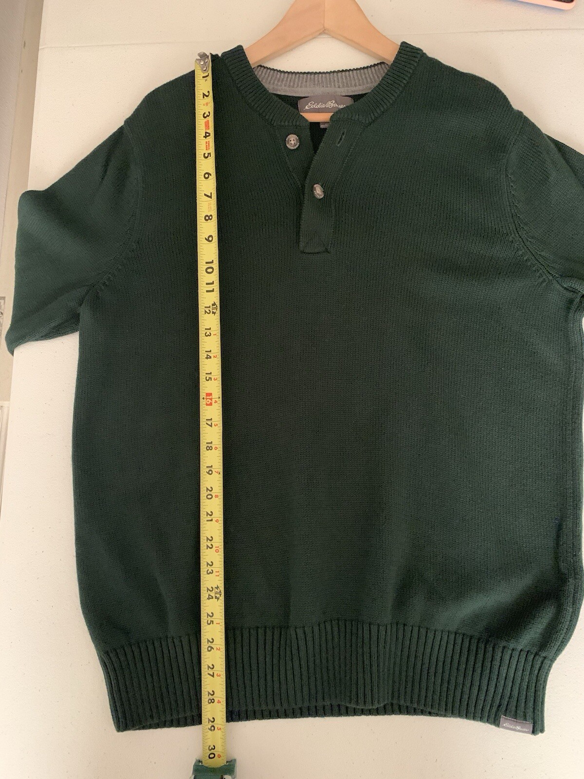 как выглядит Eddie Bauer Mens Green Sweater Sz L Cotton Henley Style Pullover Heavy Holiday фото