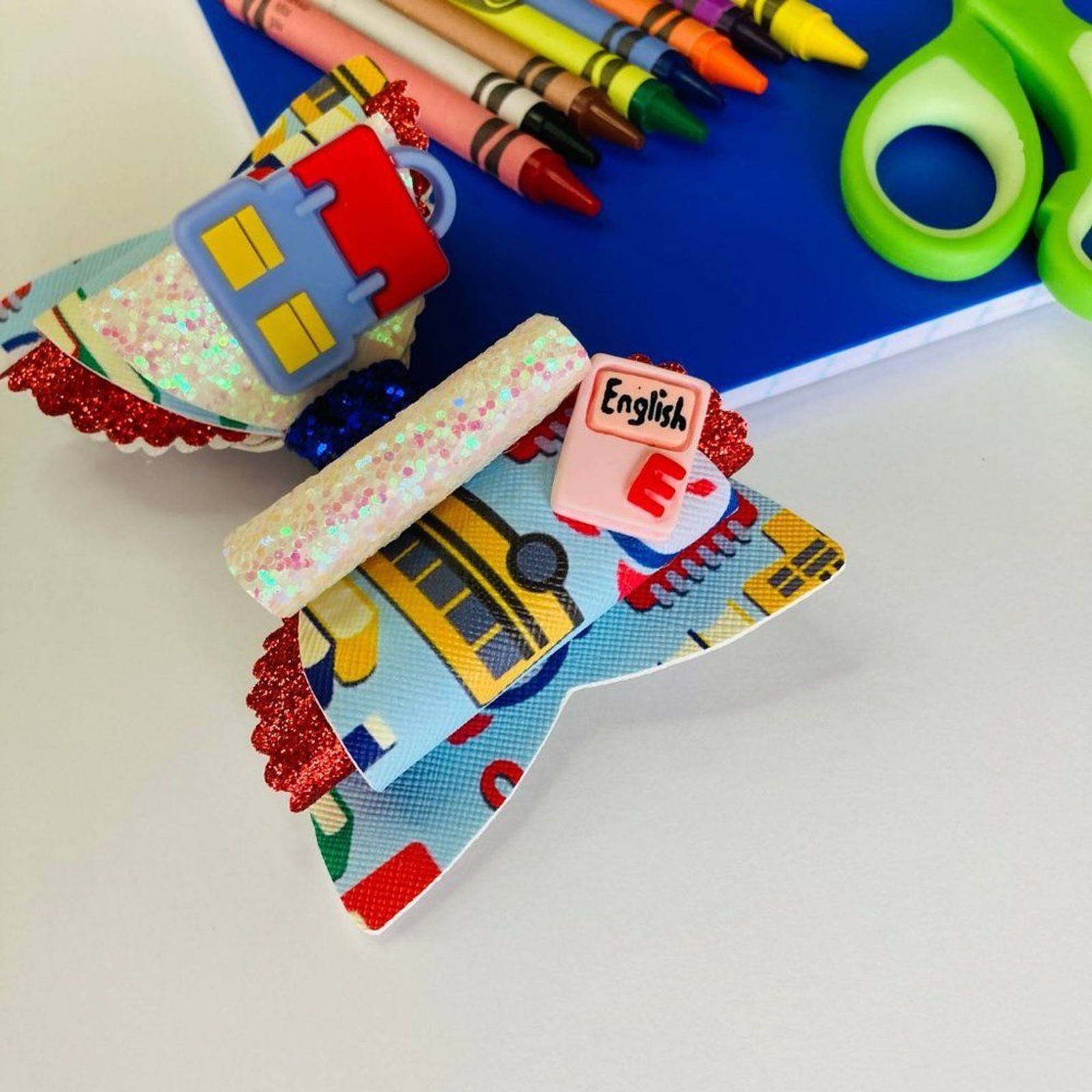 как выглядит BACK to SCHOOL 4.5" Hair Bow Clips for Girls Faux Leather Handmade NEW фото