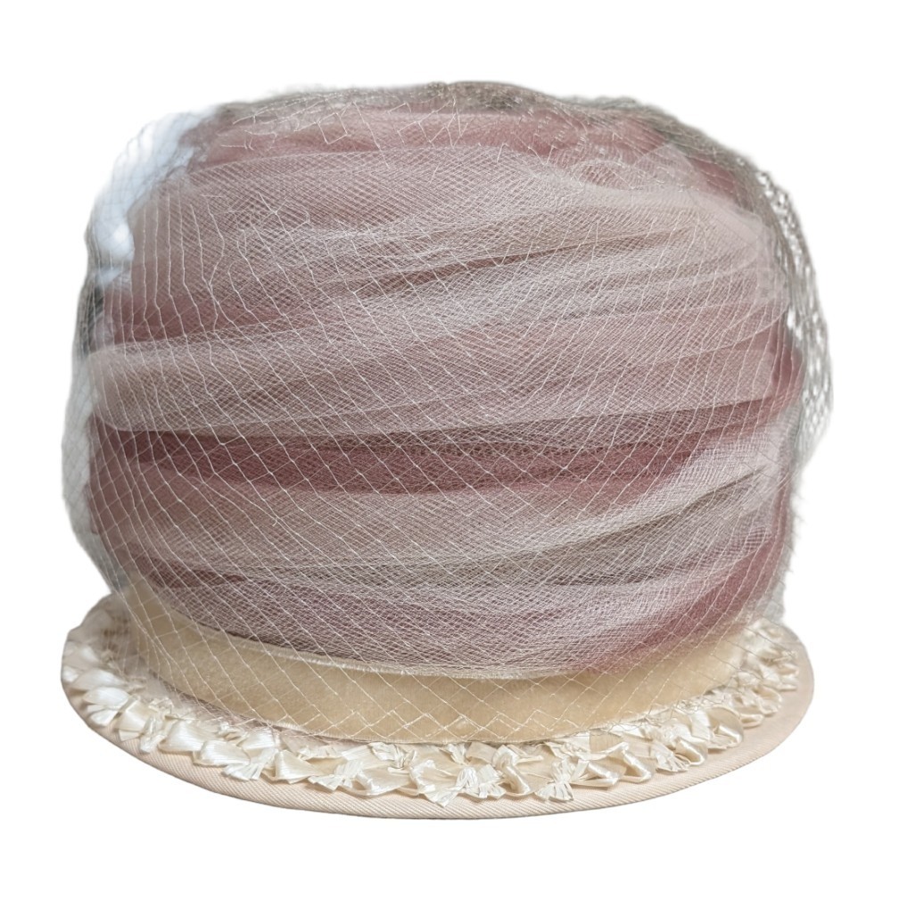 Vintage Women's Brimmed Hat With Netting Made In USA Ribbon Church Derby Wedding