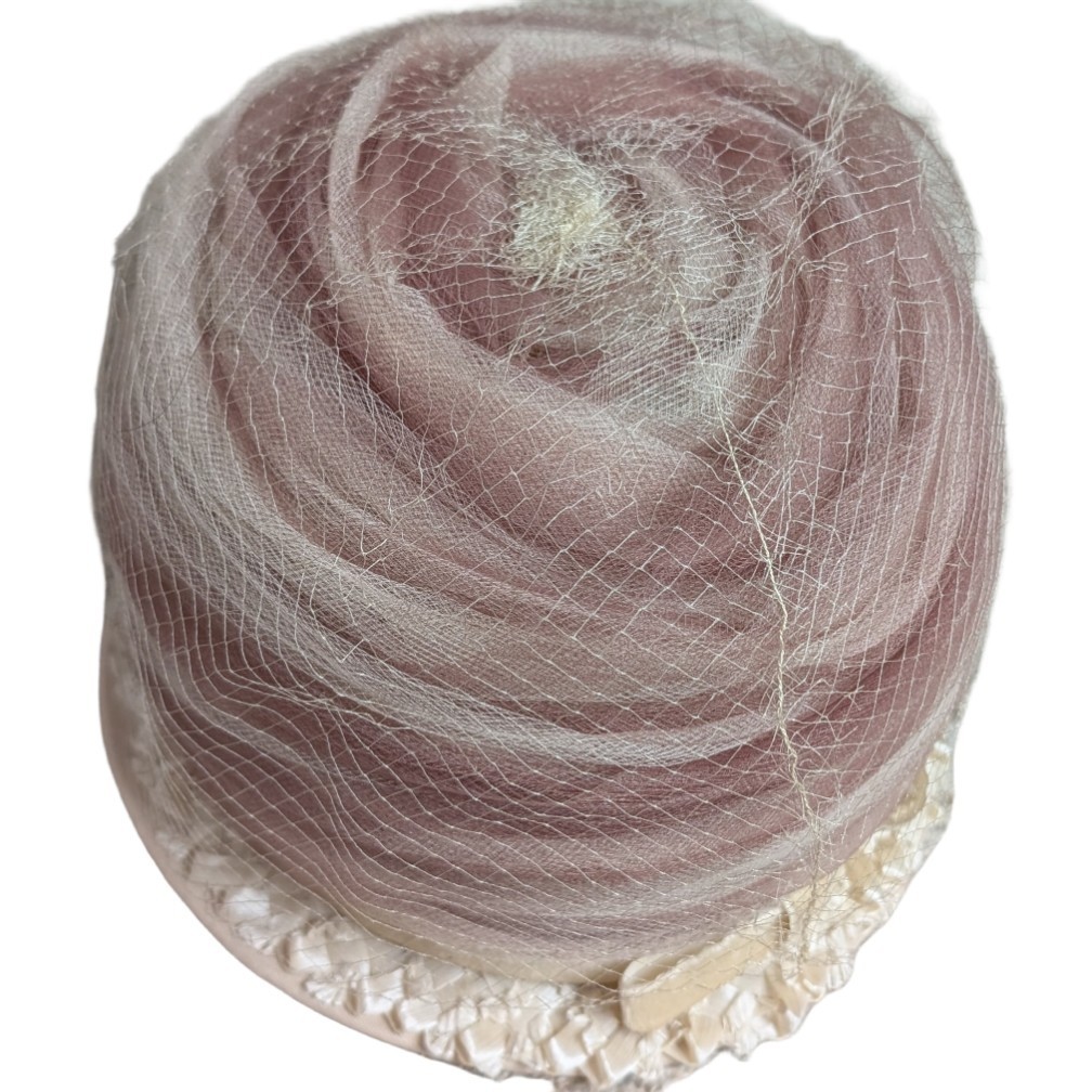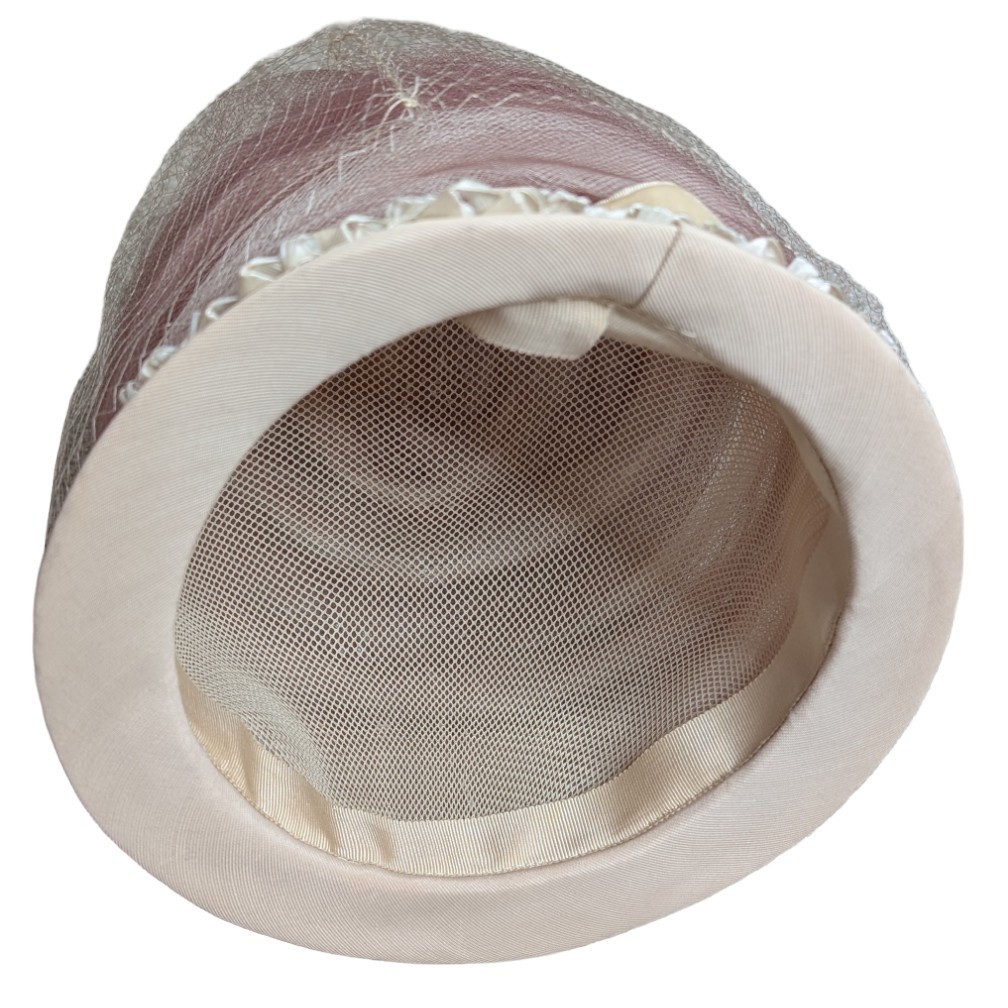 как выглядит Vintage Womens Brimmed Hat With Netting Made In USA Ribbon Church Derby Wedding фото
