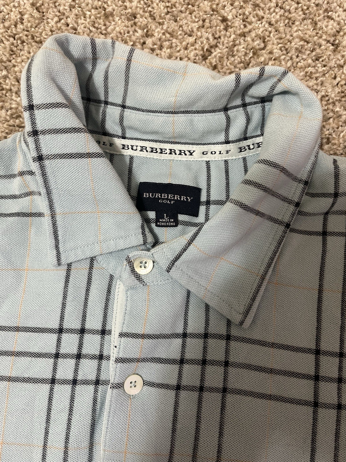 как выглядит BURBERRY GOLF Size Large Mens Polo Shirt Cotton Short Sleeve Nova Check Plaid фото