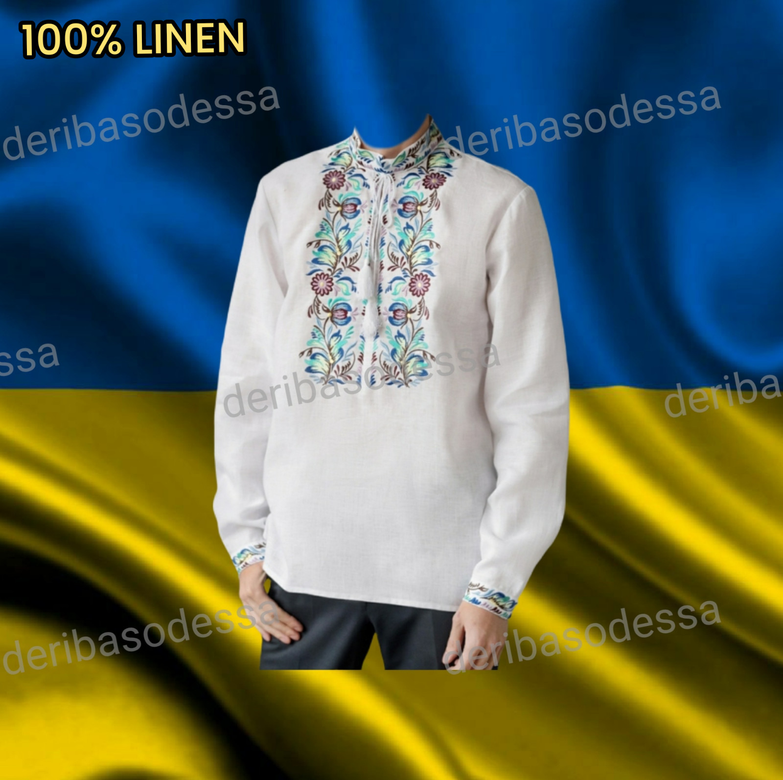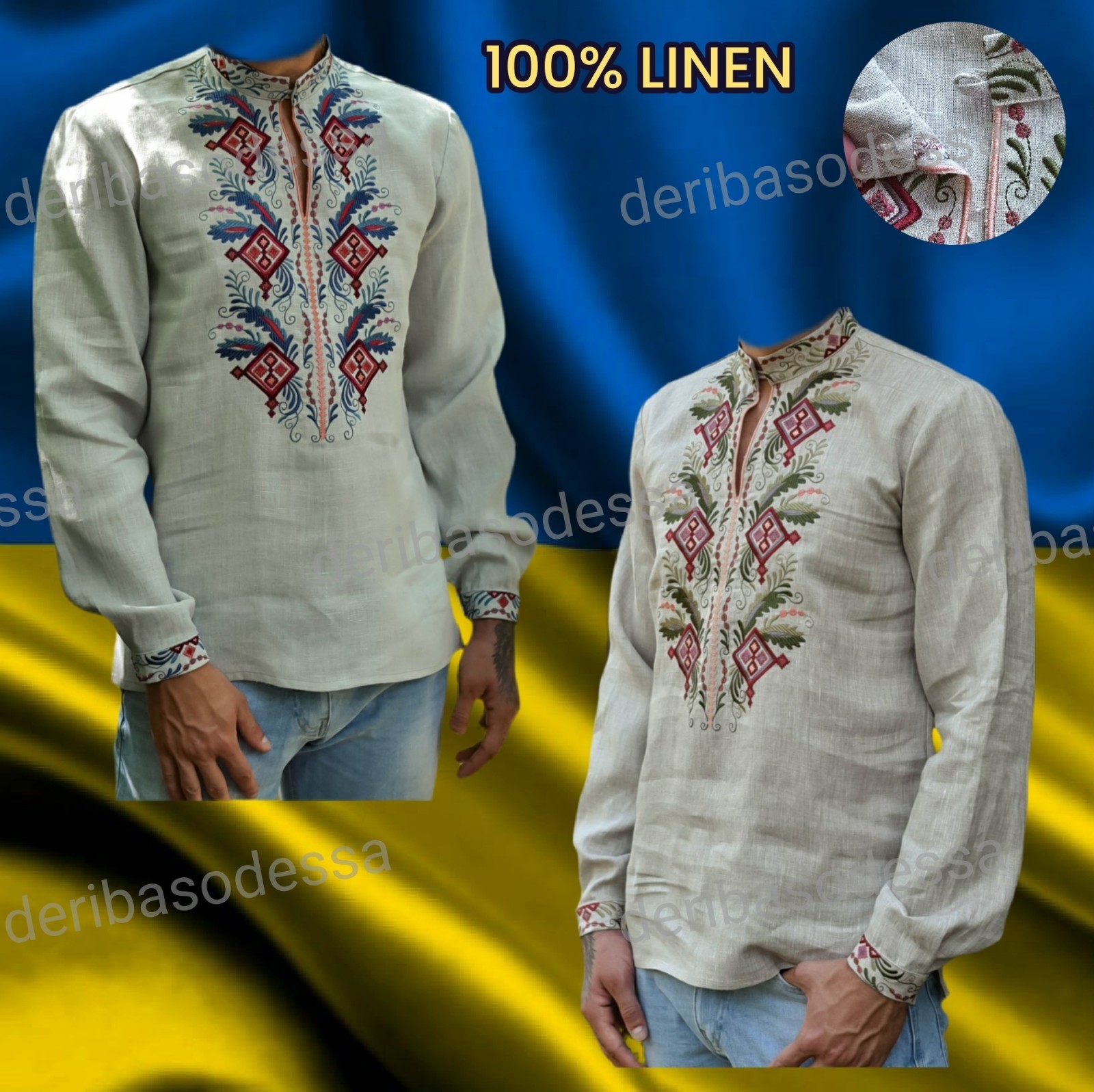 Traditional Ukrainian men's embroidered shirt Vyshyvanka S,M,L,XL-4XL Linen 100