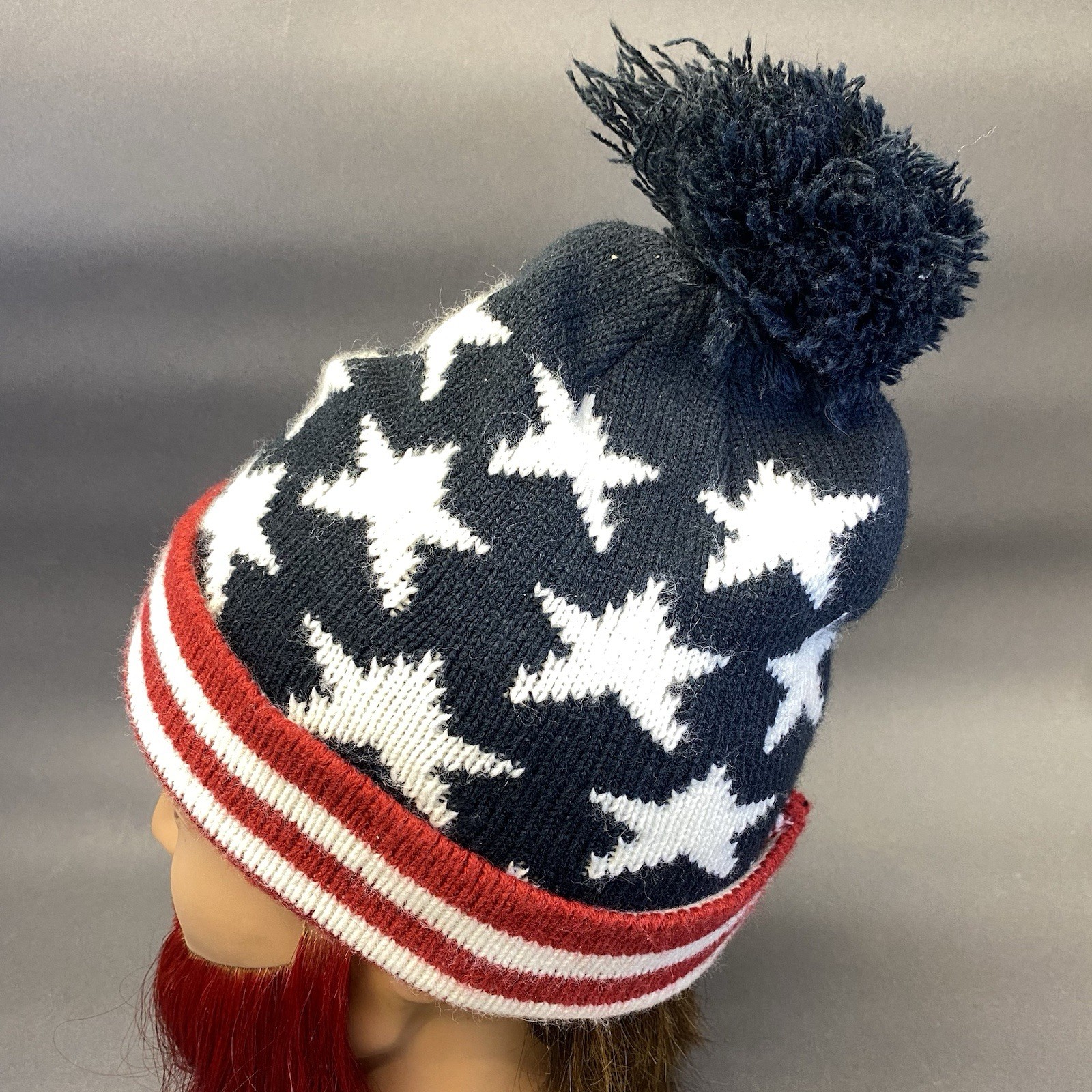 как выглядит American Flag Beanie Hat Snow Winter Cap Pom Pom Red White Blue Old Navy фото