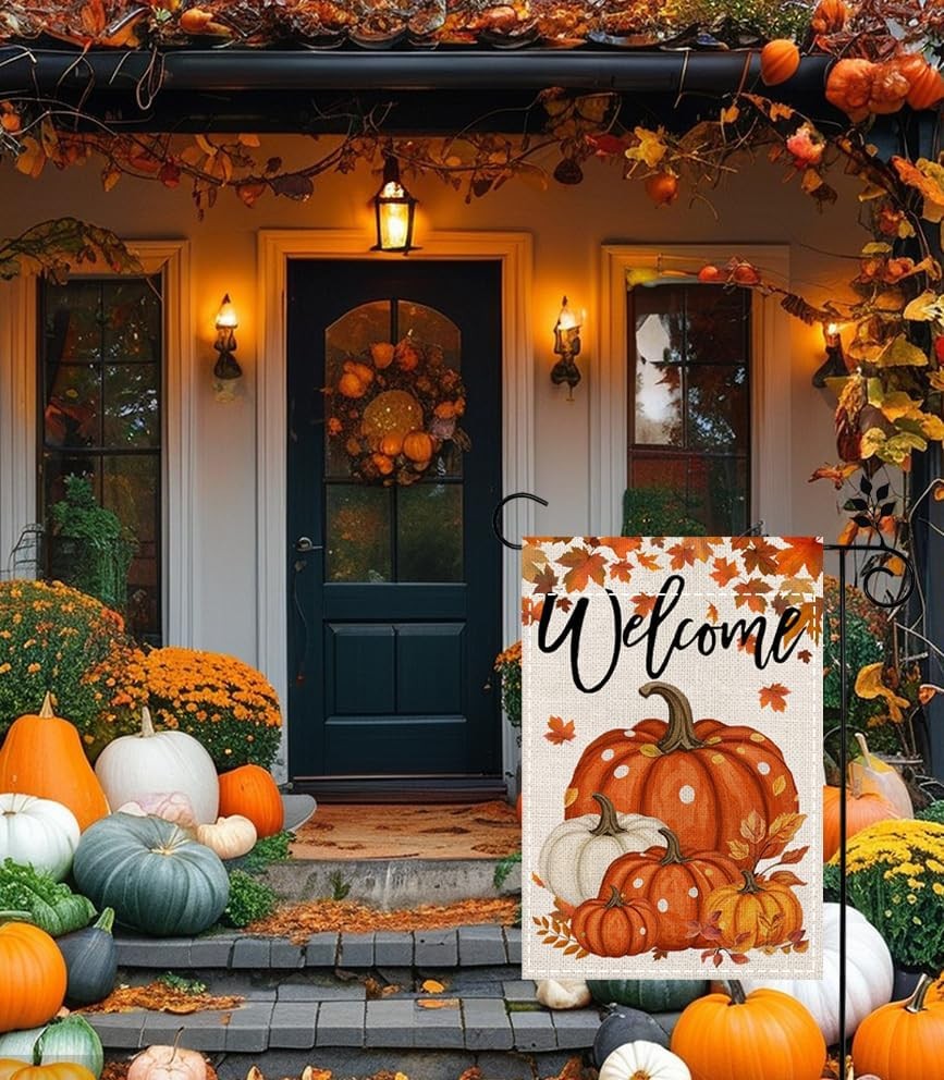 как выглядит Fall Garden Flag,12x18in Double Sided Thanksgiving Autumn Garden Welcome Pumpkin фото