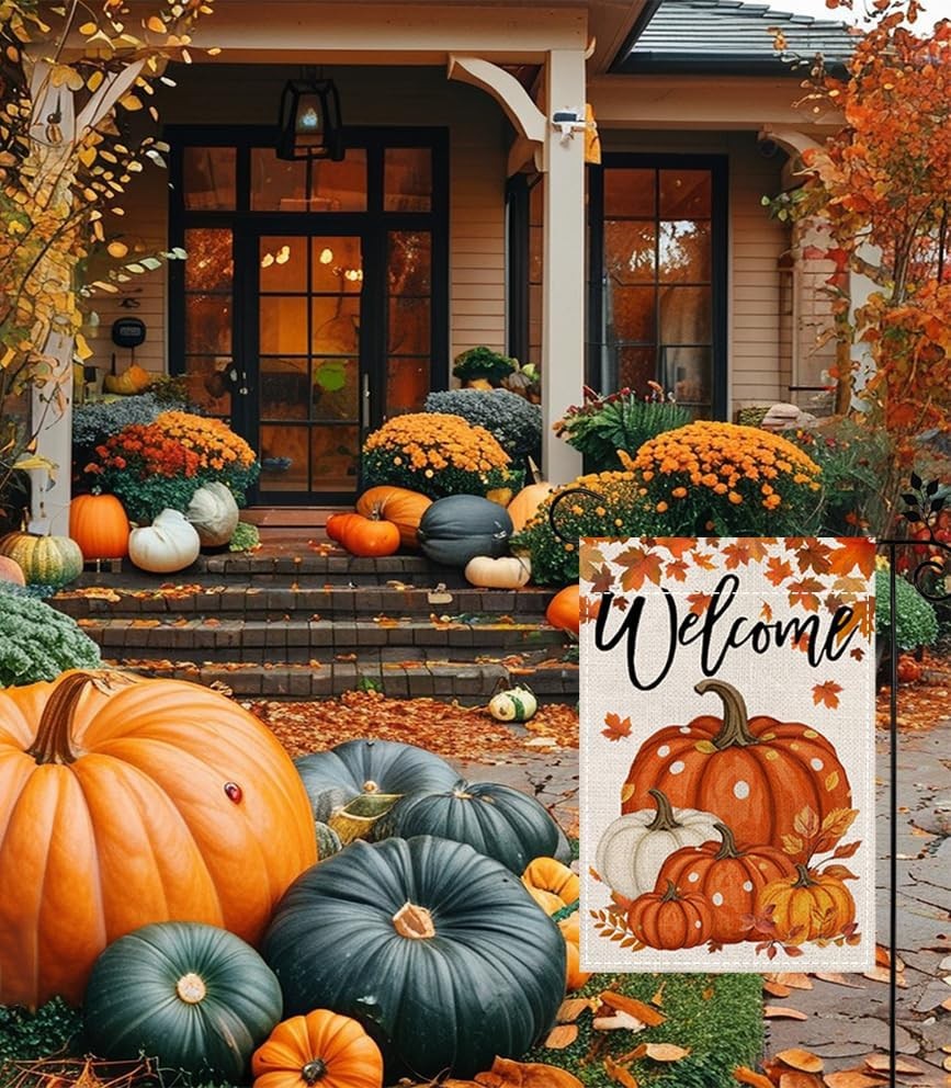 Fall Garden Flag,12x18in Double Sided Thanksgiving Autumn Garden Welcome Pumpkin