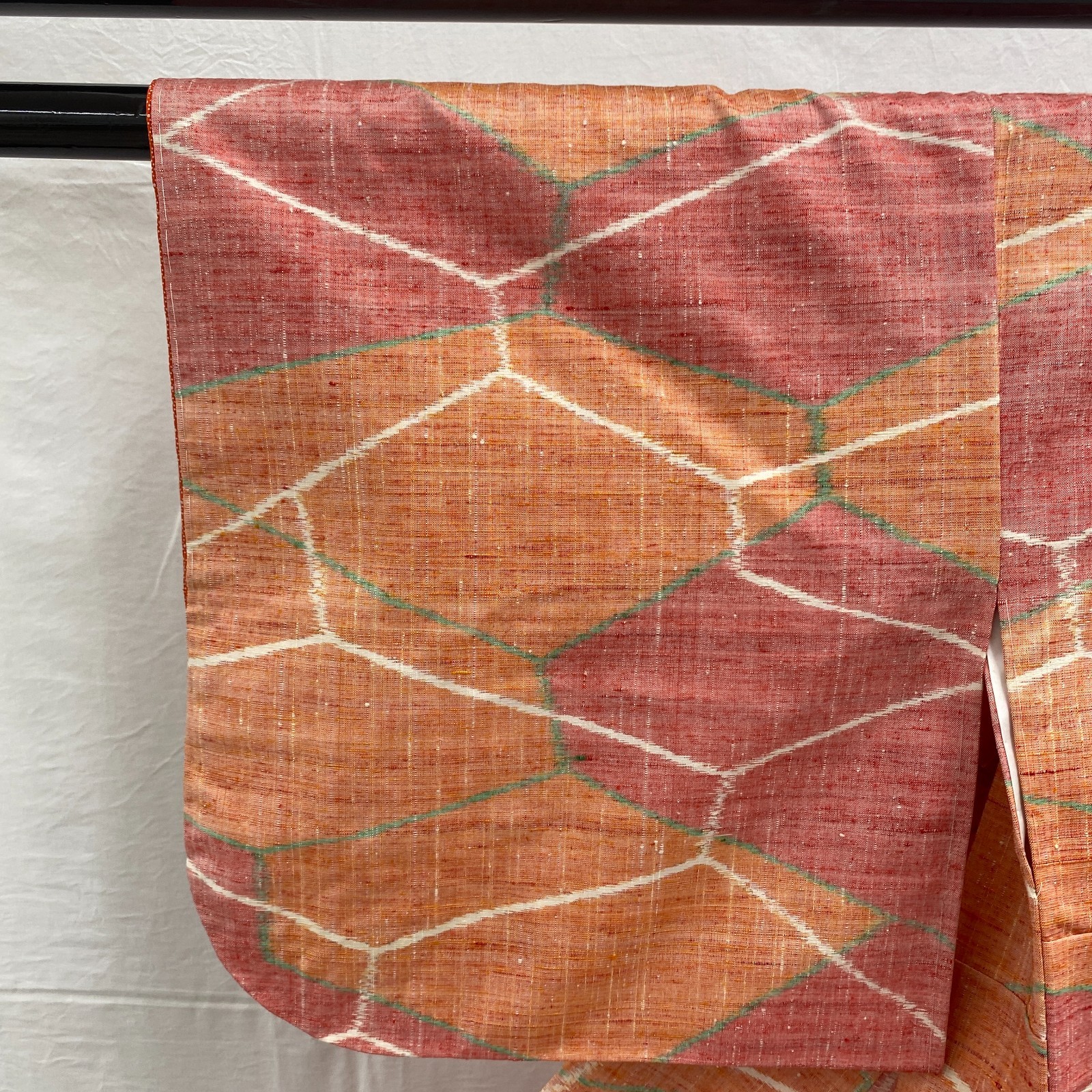 Japanese Vintage Kimono Silk Pimk Tumugi Traditional Authentic Length 61in