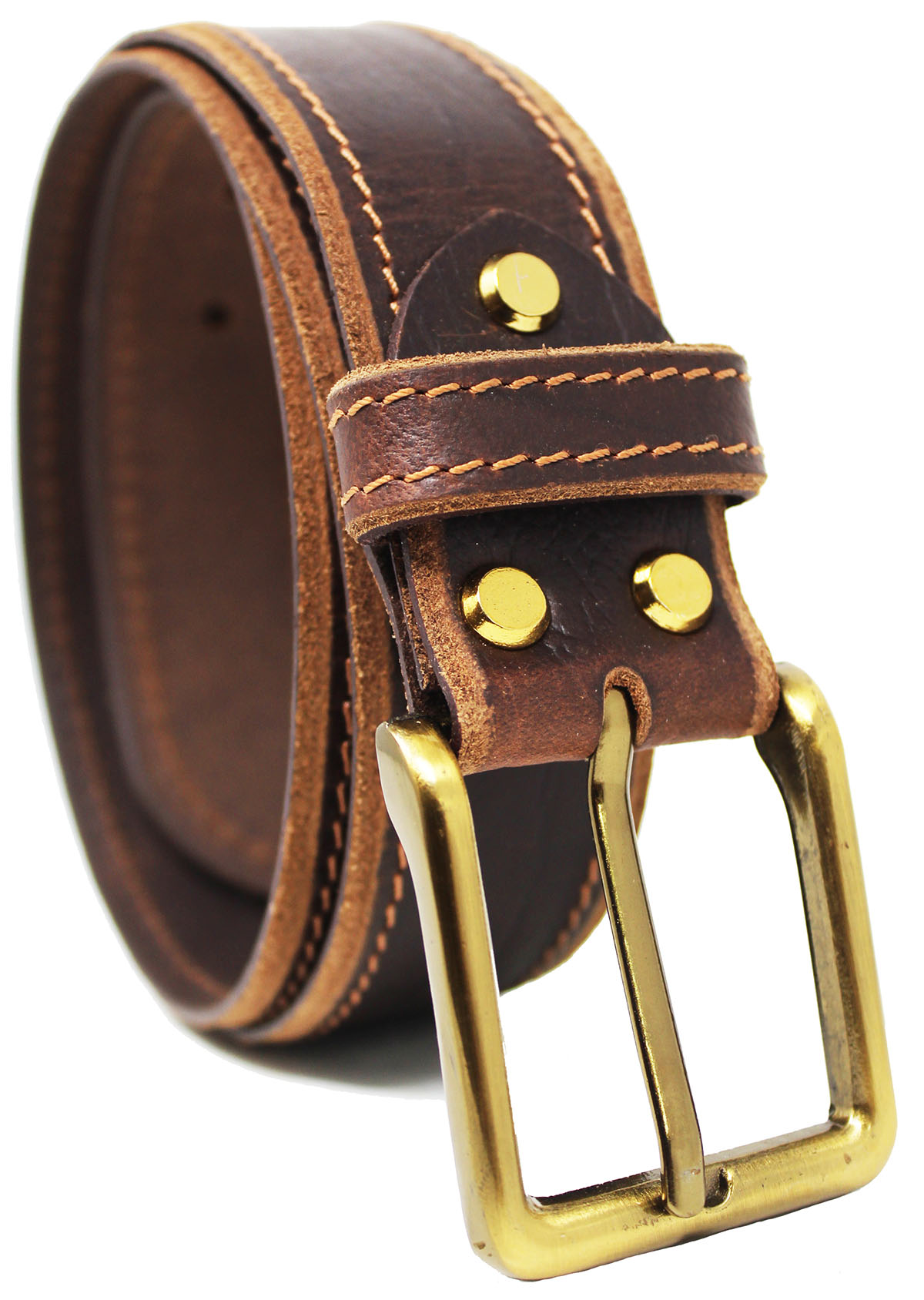 Men's Casual Jean Full-Grain Brown Leather Belt 26AB09