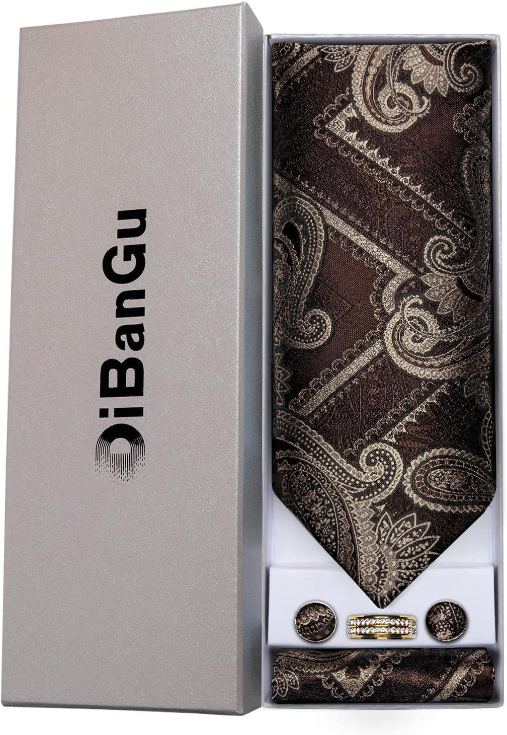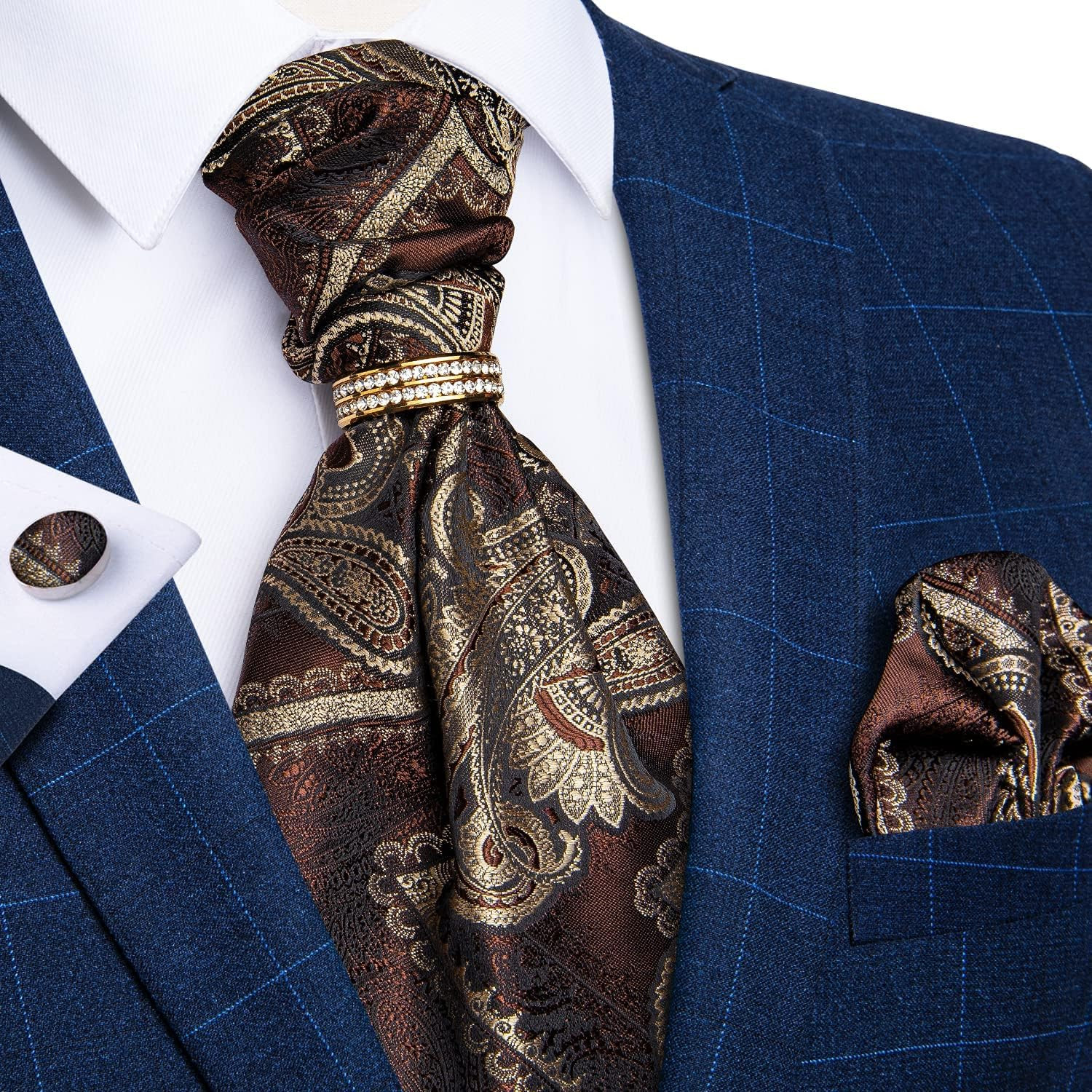 Paisley Ascot Ties for Men Silk Woven Cravat Tie and Pocket Square Cufflinks Set