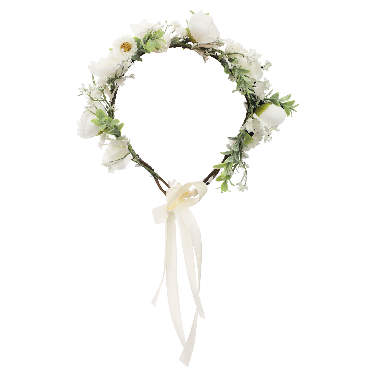 9.44 8.26 in Beige Green Round Wedding Festival Floral Headpiece, Headband