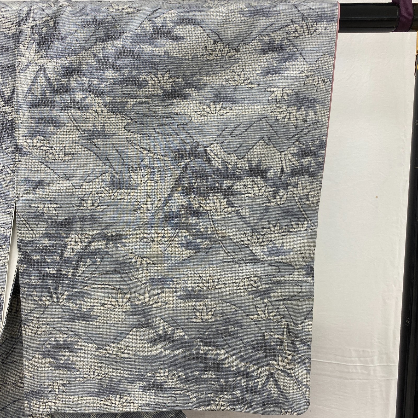 как выглядит Japanese Vintage Kimono Silk White Tumugi Traditional Authentic Length 59 in фото
