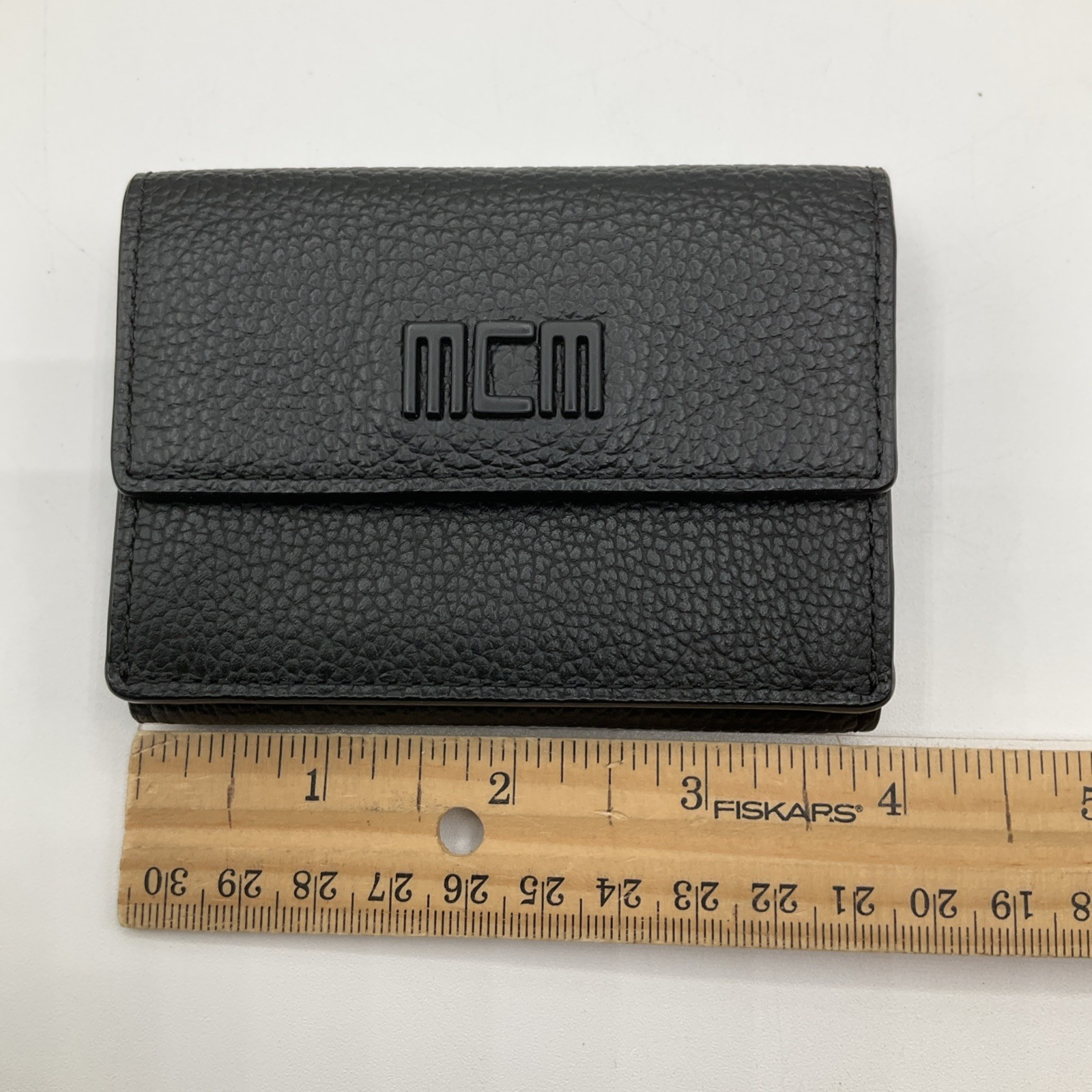 как выглядит NEW MCM Mens Mini Tech Trifold Wallet Black Leather фото