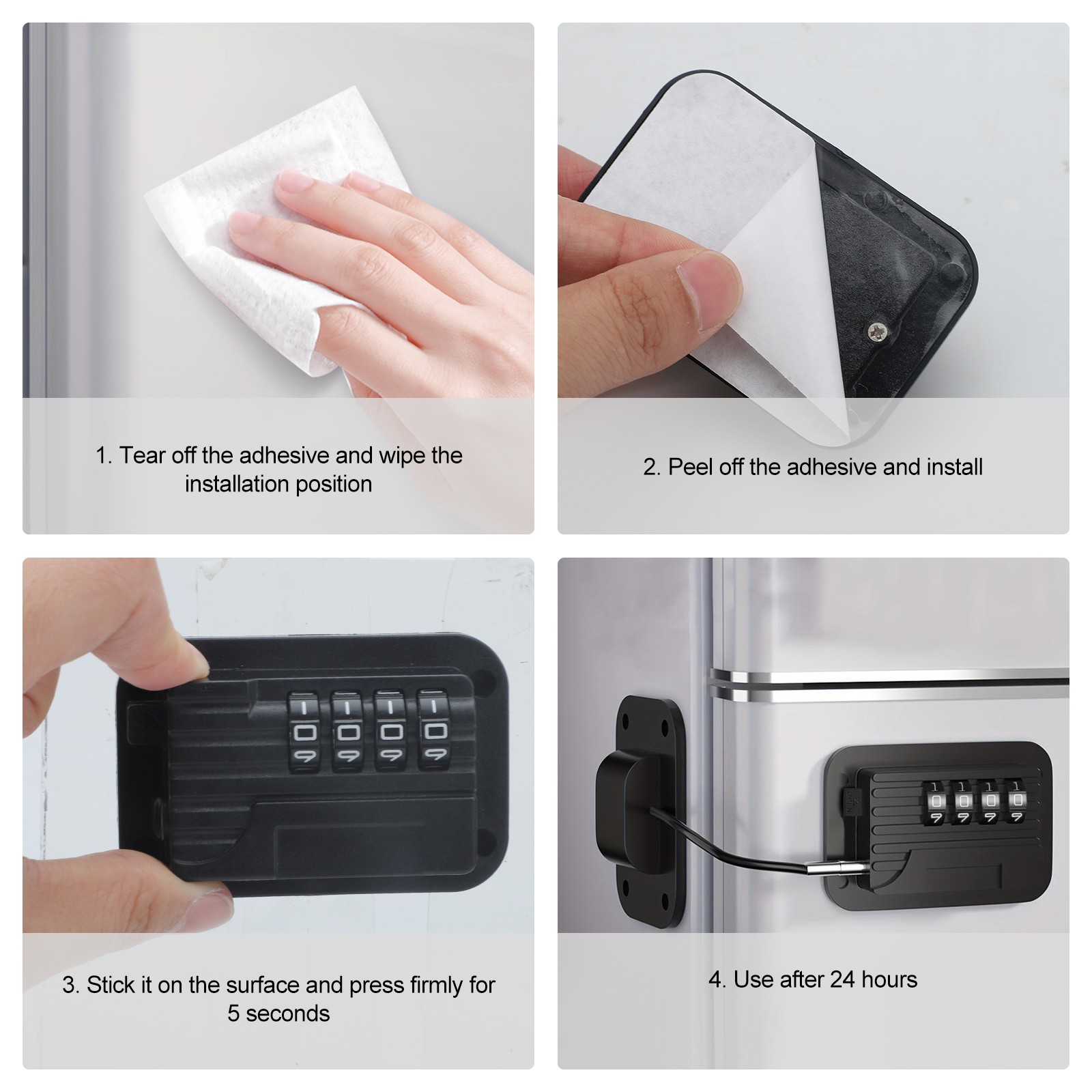 4PCS Fridge Freezer Door Lock No Tools Adhesive for Kitchen Refrigerator Drawers