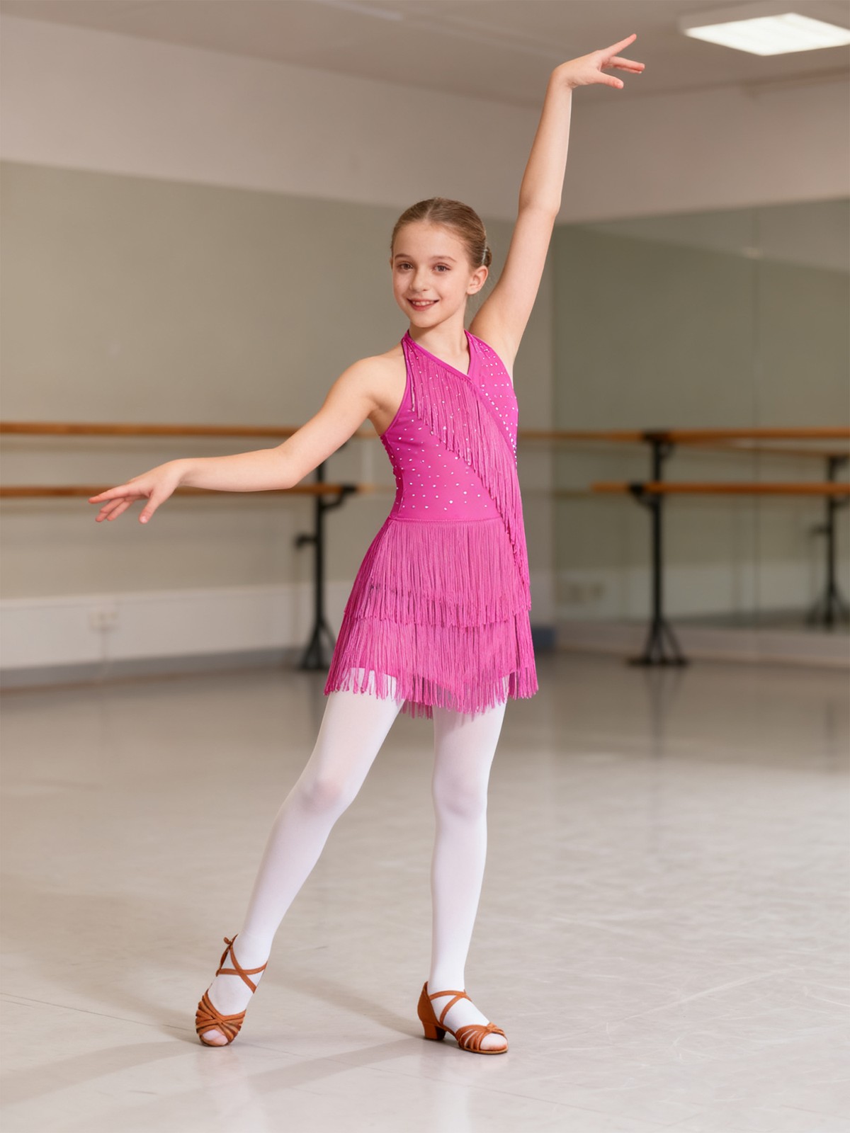 US Girls Latin Tassel Dance Dress Sequin Fringe Skirt Sparkly Ballroom Dancewear