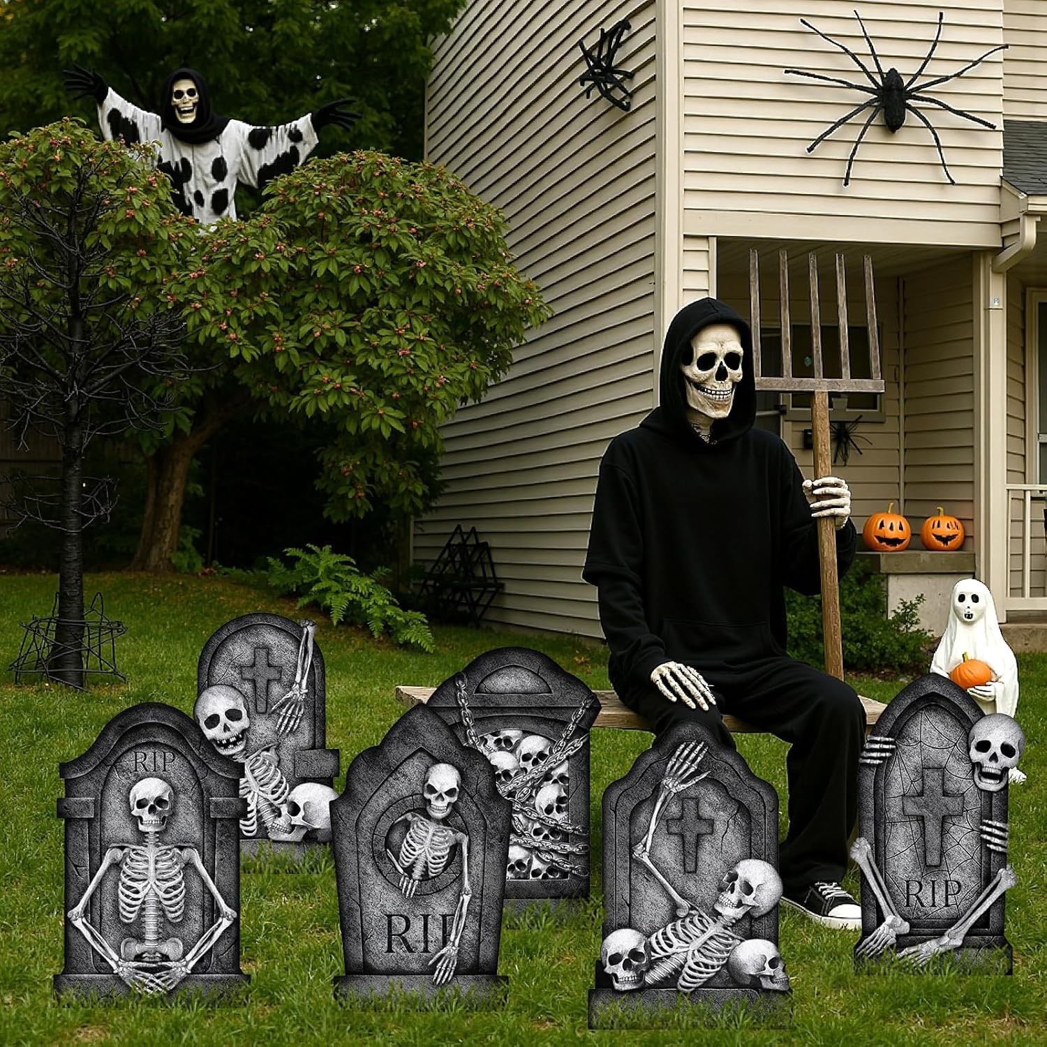 Graveyard Tombstones Halloween Decorations Outdoor: 6pcs Large Scary Gravestone