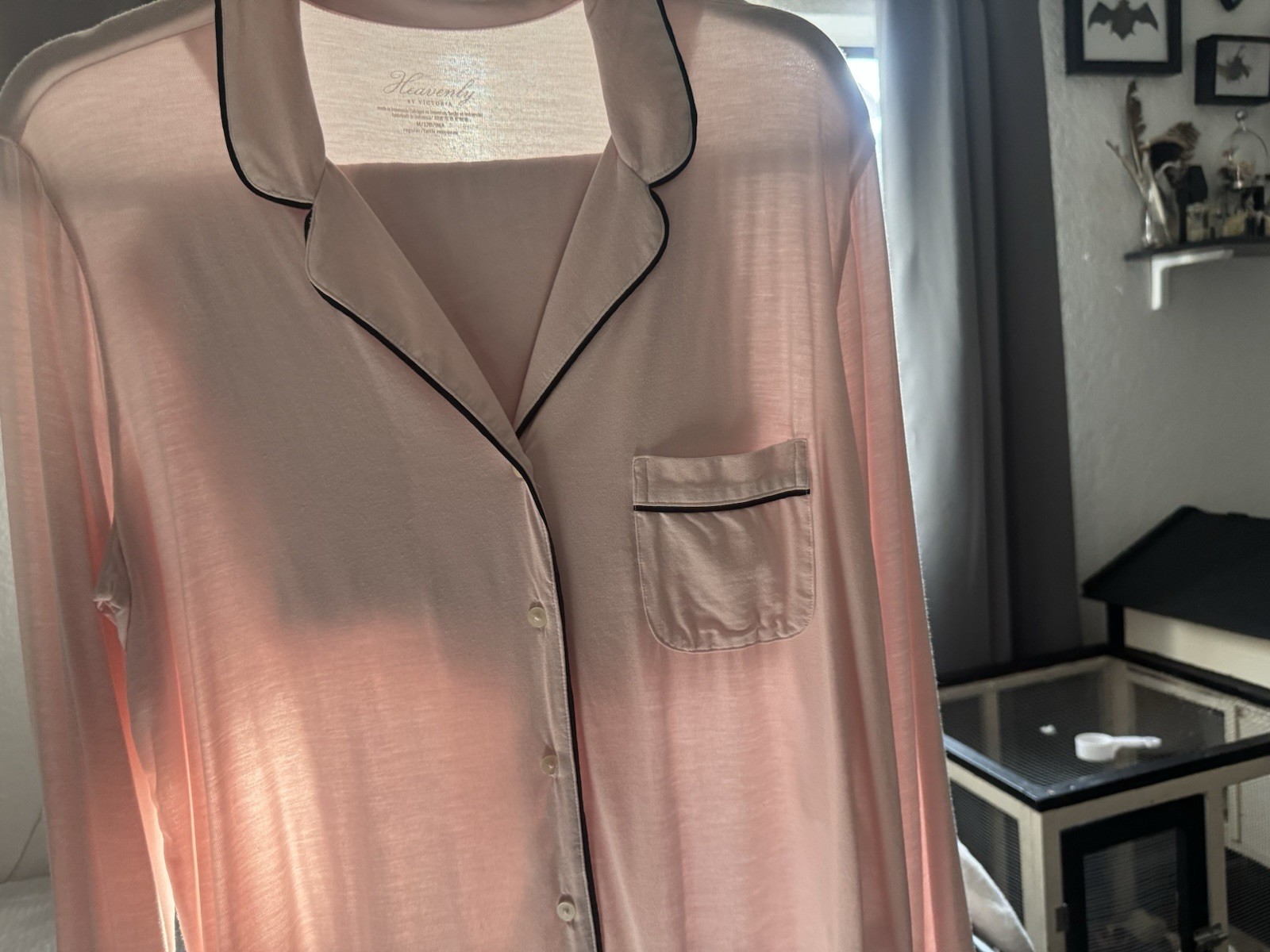 как выглядит Victorias Secret Heavenly Long Pajama Set Pink/Black MEDIUM фото