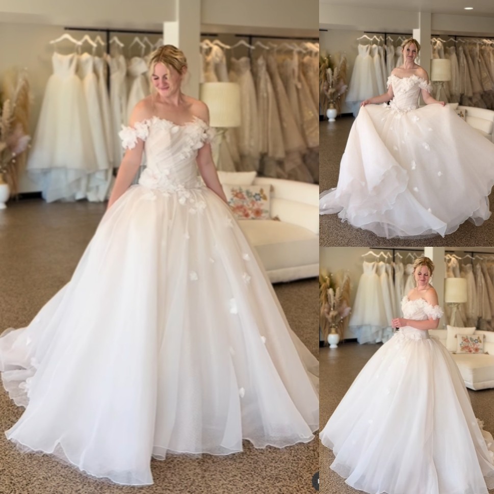 как выглядит 3D Flowers Wedding Dresses Beach White Off Shoulder Ivory A Line Bridal Gowns фото