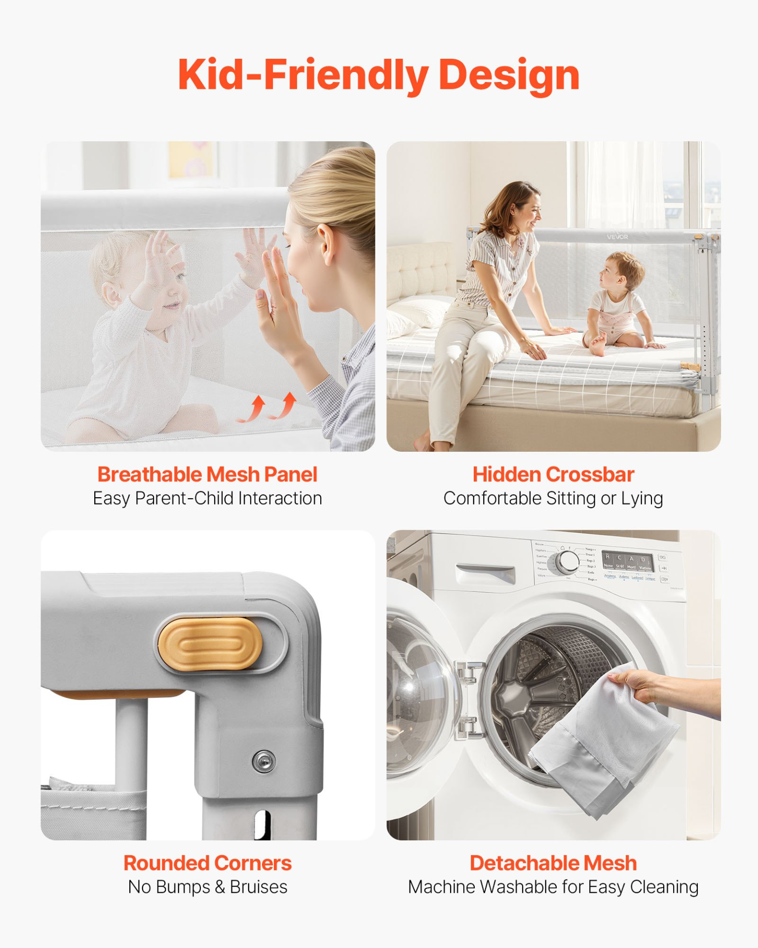 VEVOR Toddler Bed Rail Adjustable Height Kids Beds Guard Rail Guard Bumper 3 Pcs